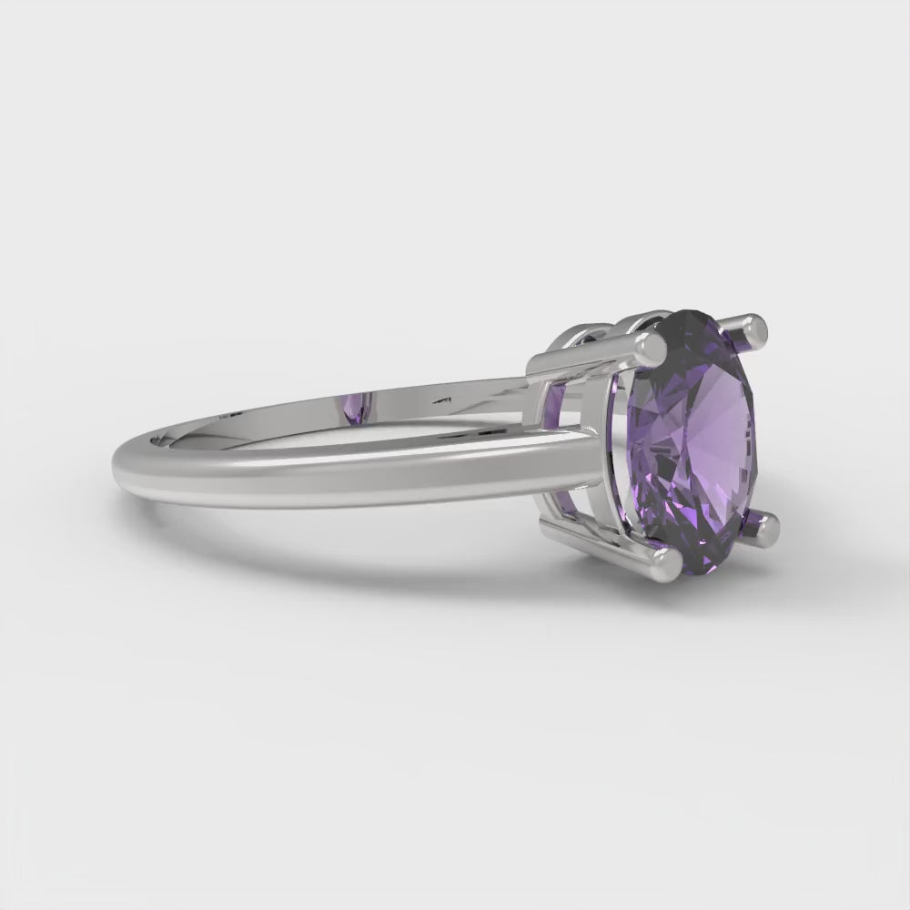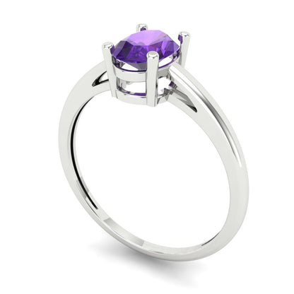 1 cttw Natural Amethyst Solitaire Engagement Ring - Solid Gold (Oval Cut,7x5mm)