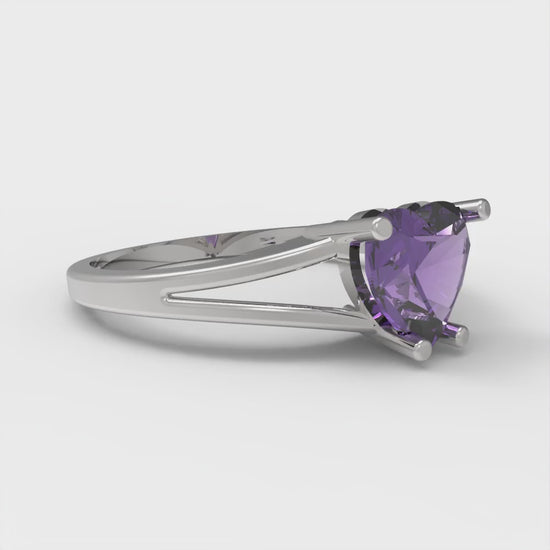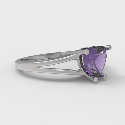 1 cttw Natural Amethyst Solitaire Engagement Ring - Solid Gold (Heart Cut,6.5mm)