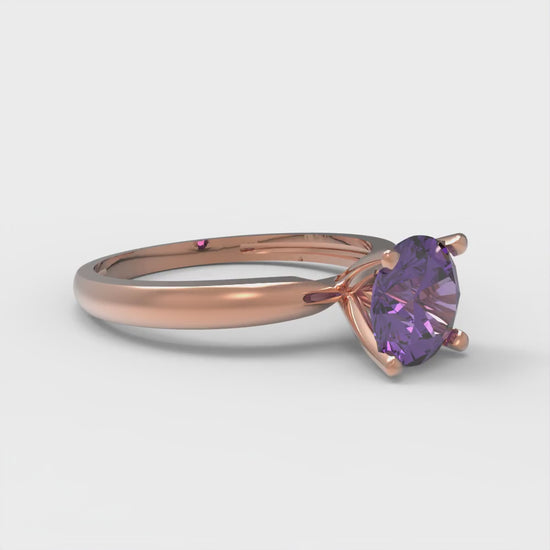 1 cttw Natural Amethyst Solitaire Engagement Ring - Solid Gold (Round Cut,6.5mm)