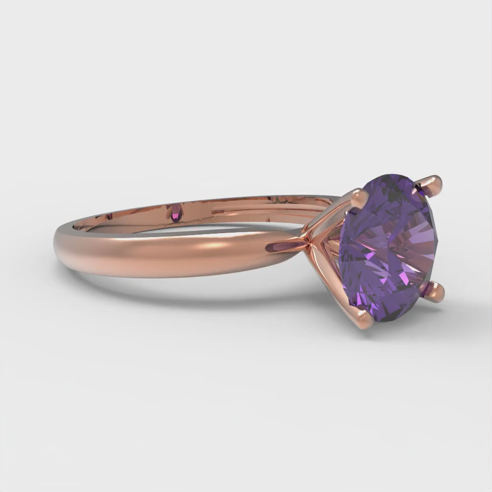 1.5 cttw Natural Amethyst Solitaire Engagement Ring - Solid Gold (Round Cut,7.5mm)