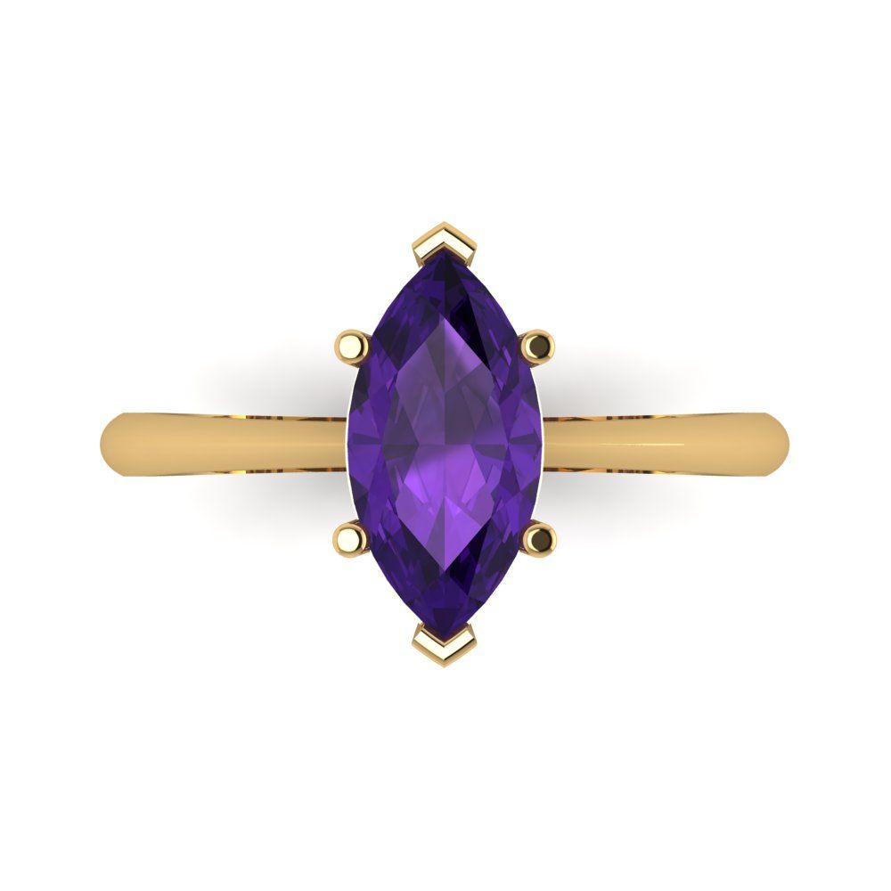 1.5 cttw Natural Amethyst Solitaire Engagement Ring - Solid Gold (Marquise Cut ,11x5.5mm)