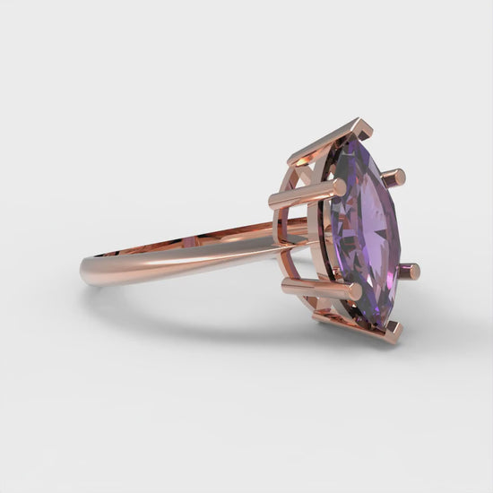1.5 cttw Natural Amethyst Solitaire Engagement Ring - Solid Rose Gold (VVS1, Marquise Cut ,11x5.5mm)