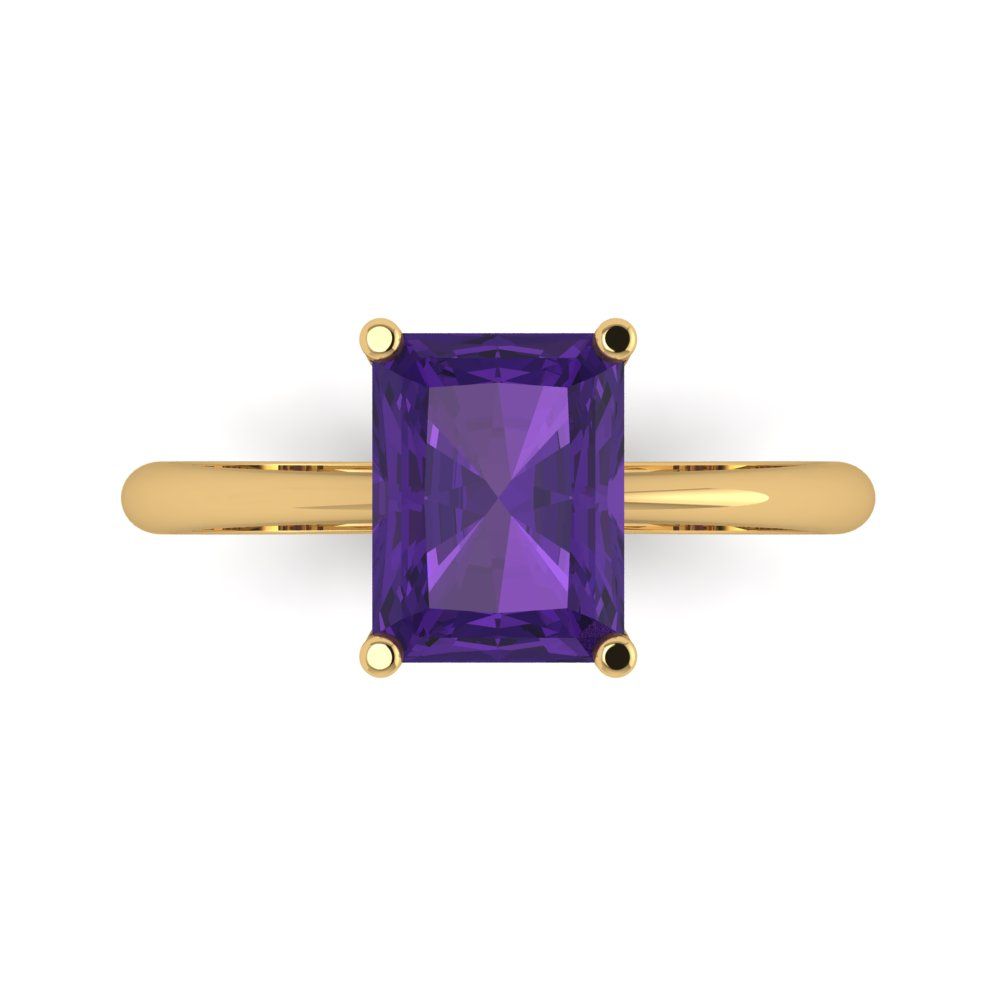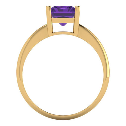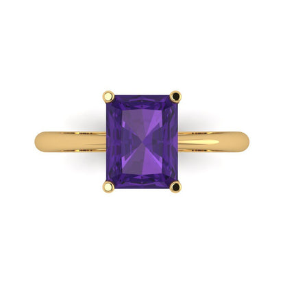 2.5 cttw Natural Amethyst Solitaire Engagement Ring - Solid Gold (Radiant Cut,8.5x6.5mm)