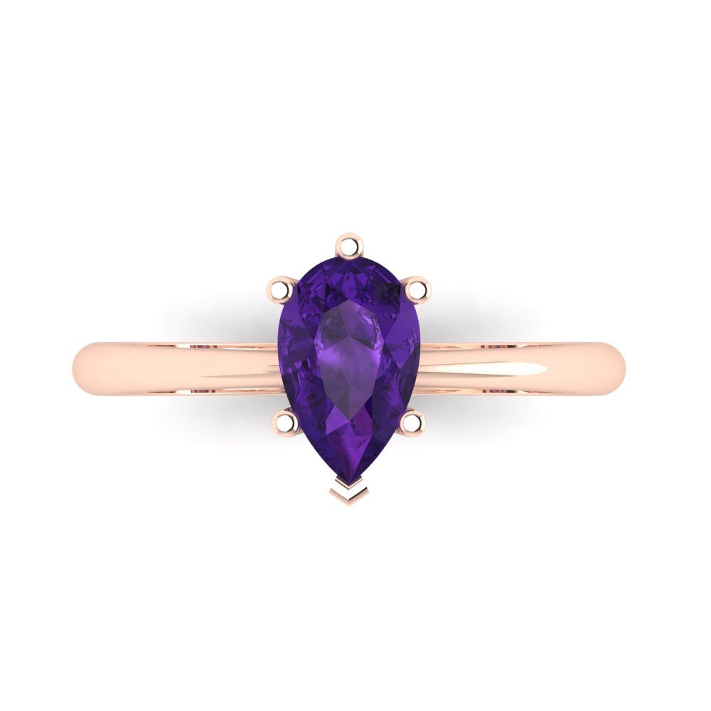 1 cttw Natural Amethyst Solitaire Engagement Ring - Solid Gold (Pear Cut,8x5mm)