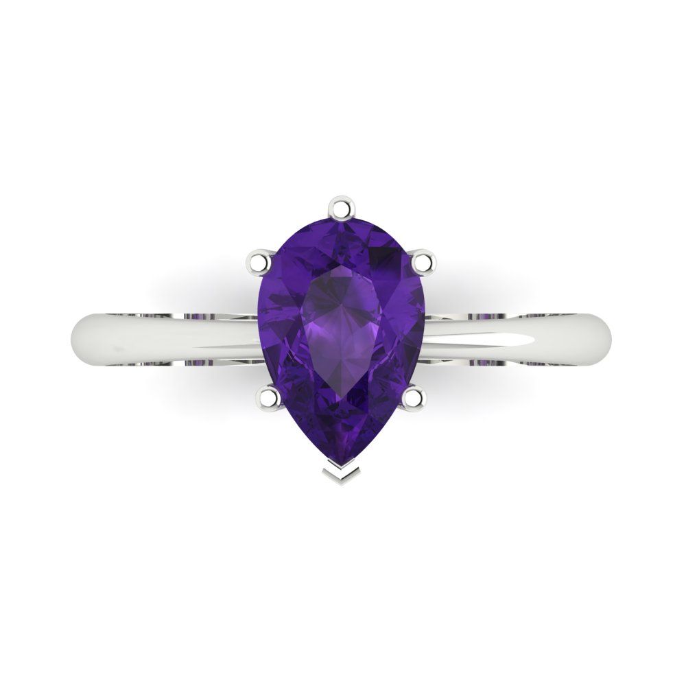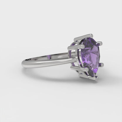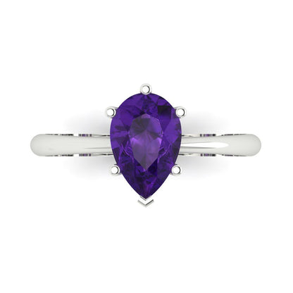 1.5 cttw Natural Amethyst Solitaire Engagement Ring - Solid Gold (Pear Cut,9x6mm)