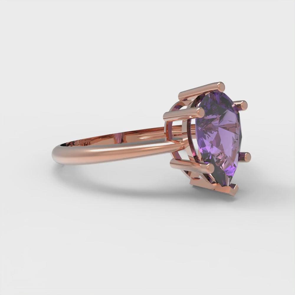 1.5 cttw Natural Amethyst Solitaire Engagement Ring - Solid Gold (Pear Cut,9x6mm)