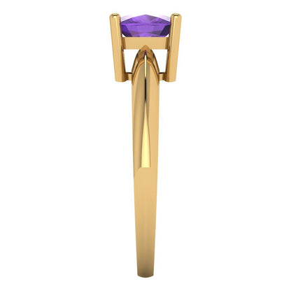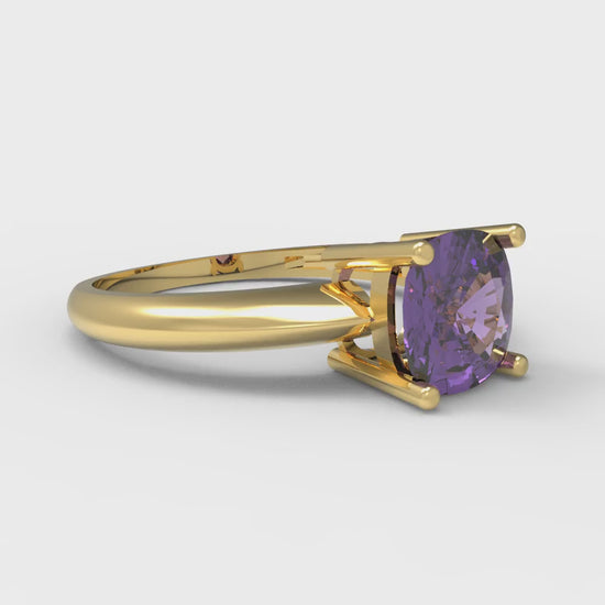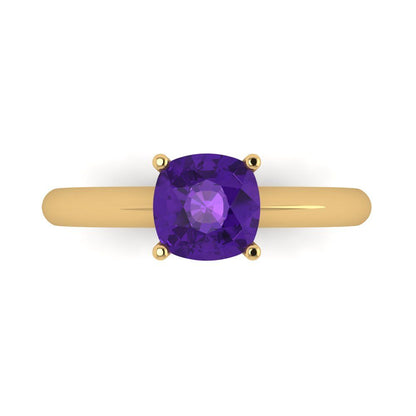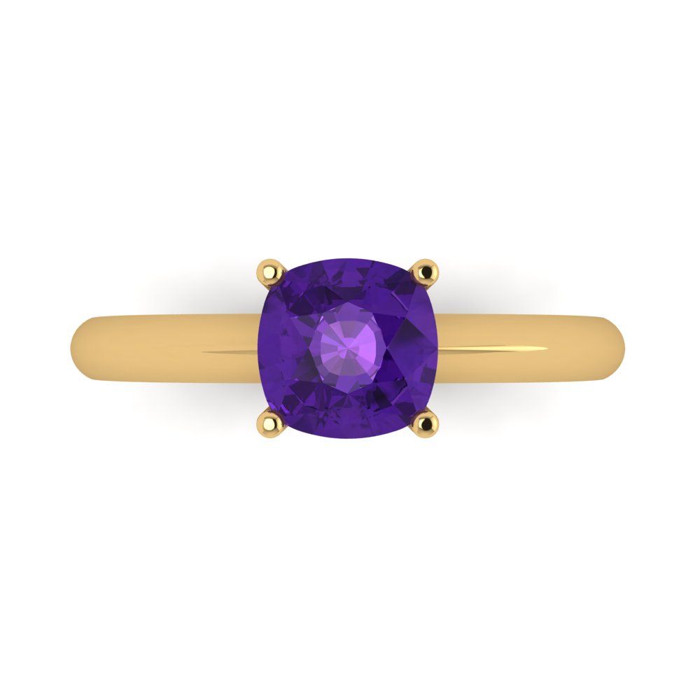 1.5 cttw Natural Amethyst Solitaire Engagement Ring - Solid Gold (Cushion Cut,6.5mm)