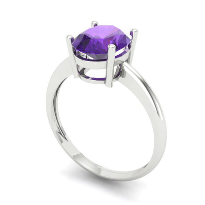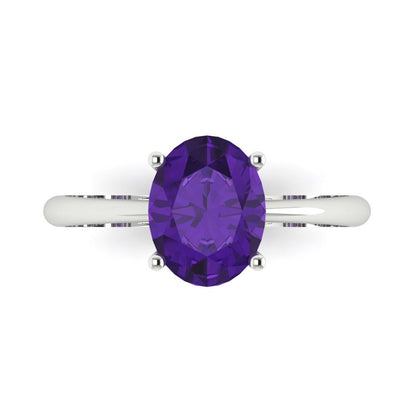 2 cttw Natural Amethyst Solitaire Engagement Ring - Solid Gold (Oval Cut,9x7mm)