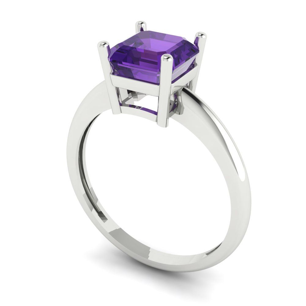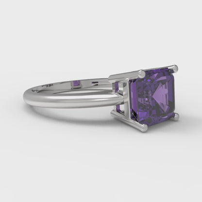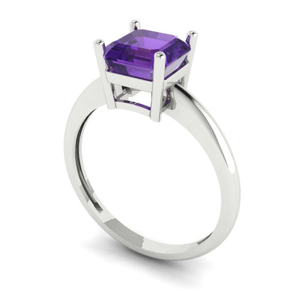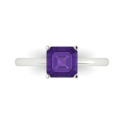 1.5 cttw Natural Amethyst Solitaire Engagement Ring - Solid Gold (Asscher Cut,6.5mm)