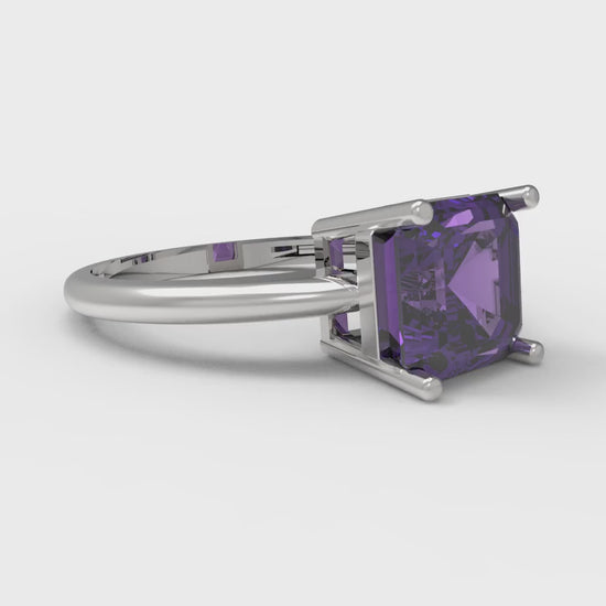 2 cttw Natural Amethyst Solitaire Engagement Ring - Solid Gold (Asscher Cut,7.0mm)