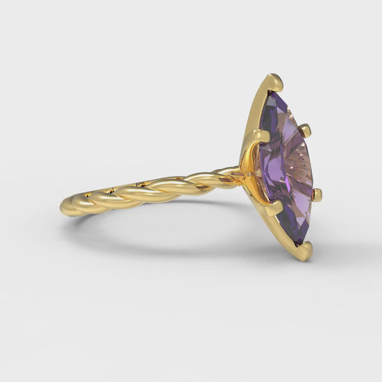 2 cttw Natural Amethyst Solitaire Engagement Ring - Solid Gold (Marquise Cut,12x6mm )