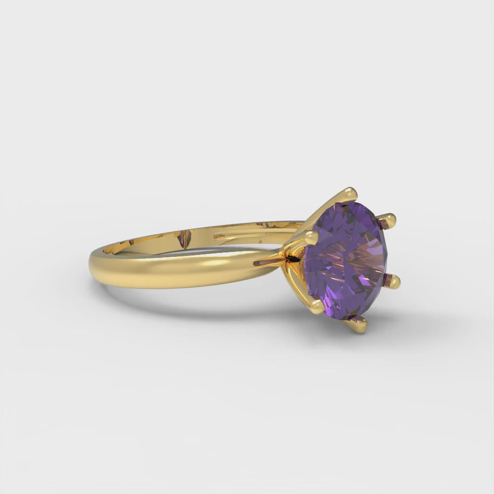 1.5 cttw Natural Amethyst Solitaire Engagement Ring - Solid Gold (Round Cut,7.5mm)