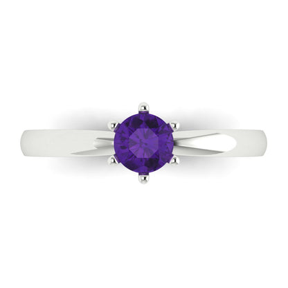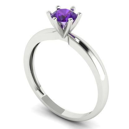 0.5 cttw Natural Amethyst Solitaire Engagement Ring - Solid Gold (Round Cut,5.0mm)