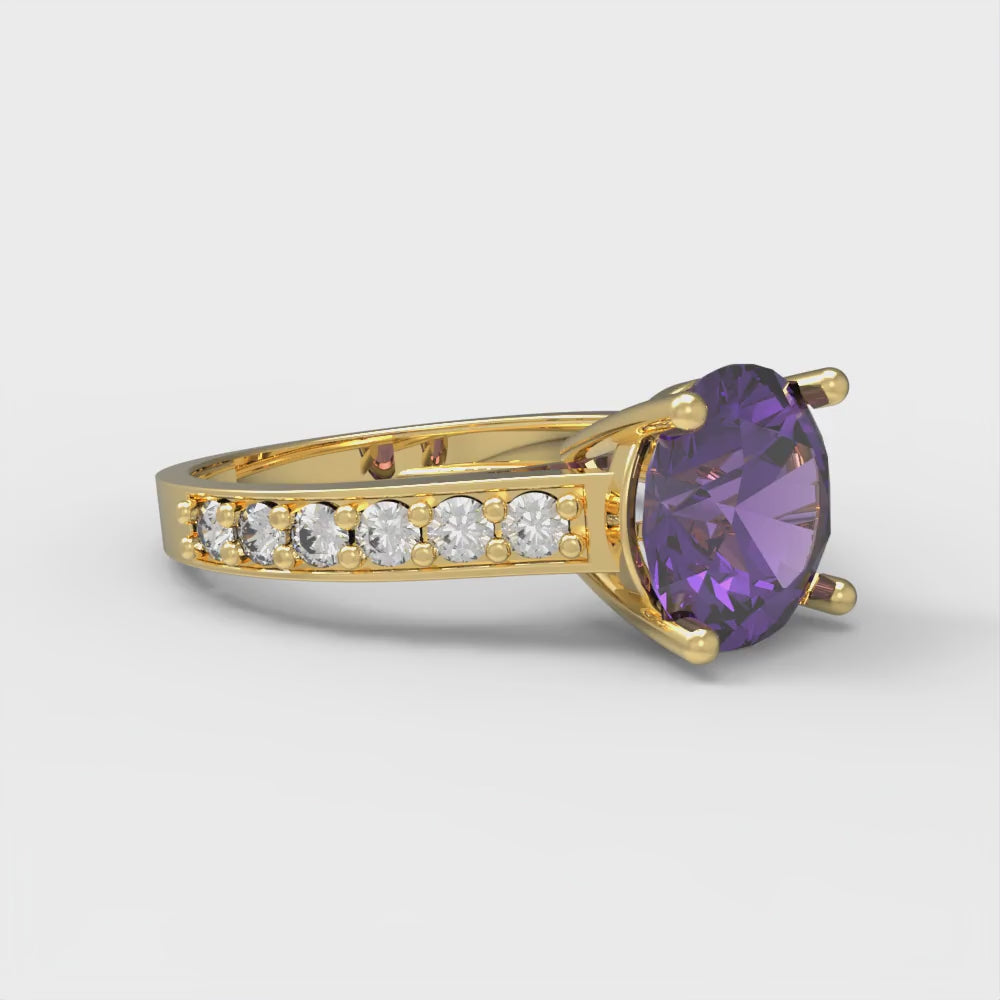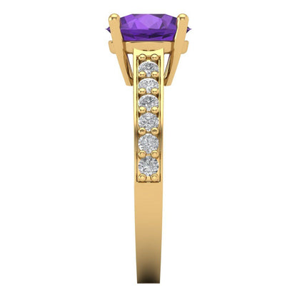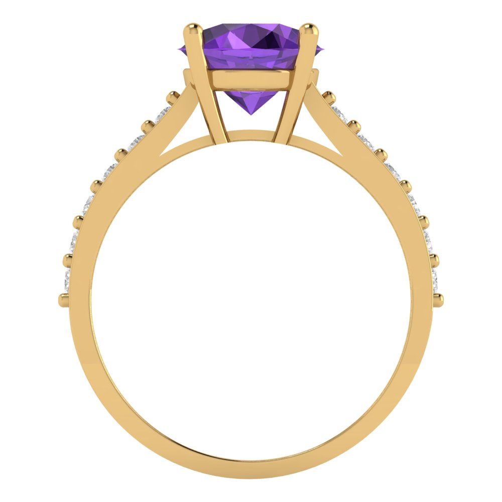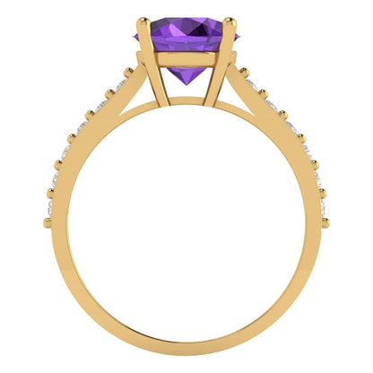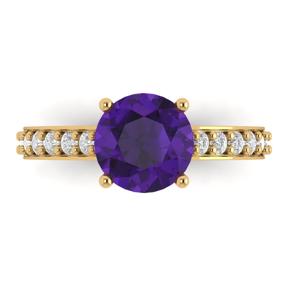 2.3 cttw Natural Amethyst Solitaire with Zirconia Simulated Diamond Accents Engagement Ring - Solid Gold (Round Cut,8.0mm)