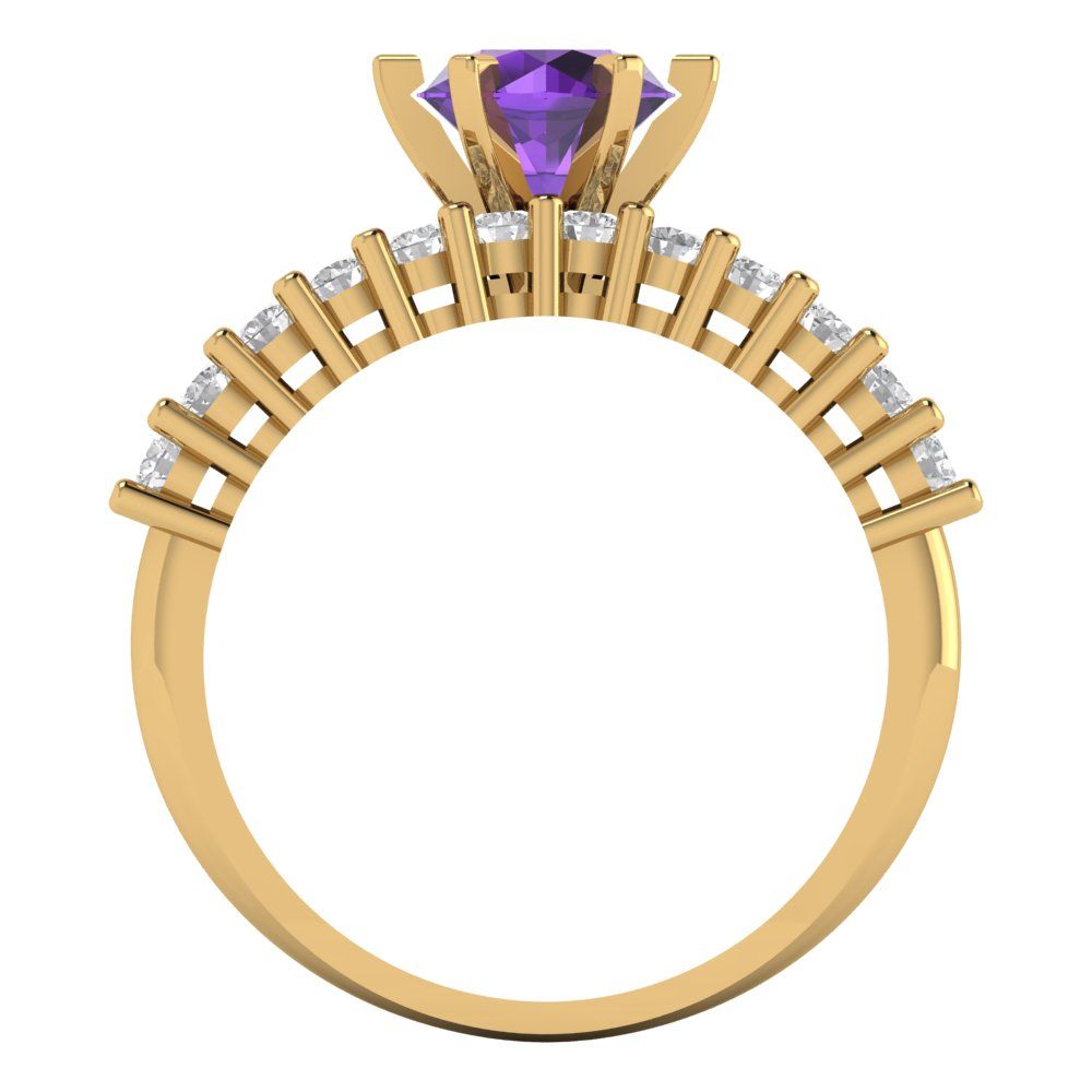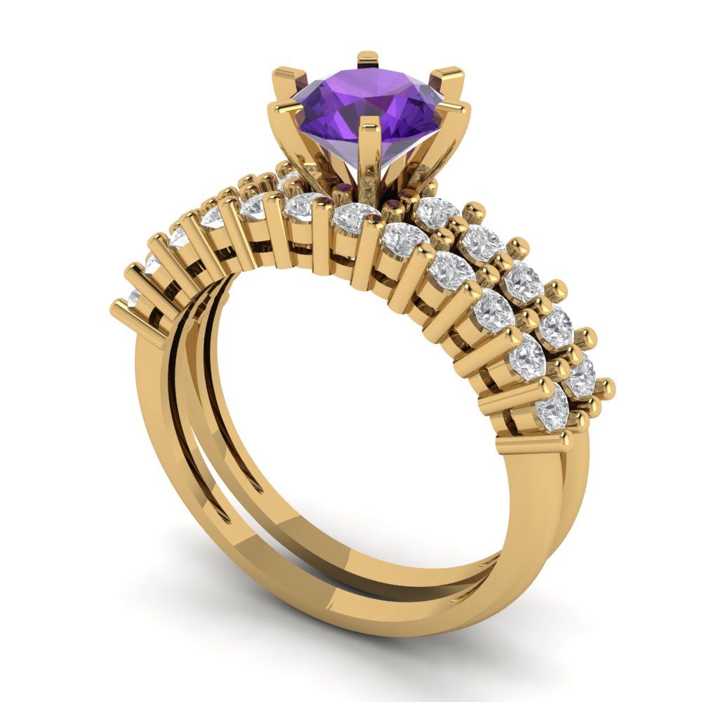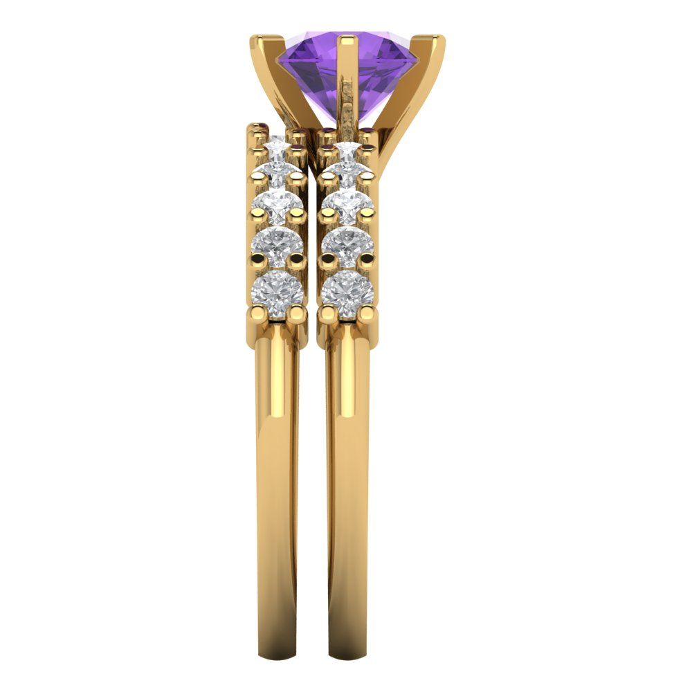 1.66 cttw Round Cut Natural Amethyst Bridal Set - Solid Yellow Gold Engagement Ring & Wedding Band
