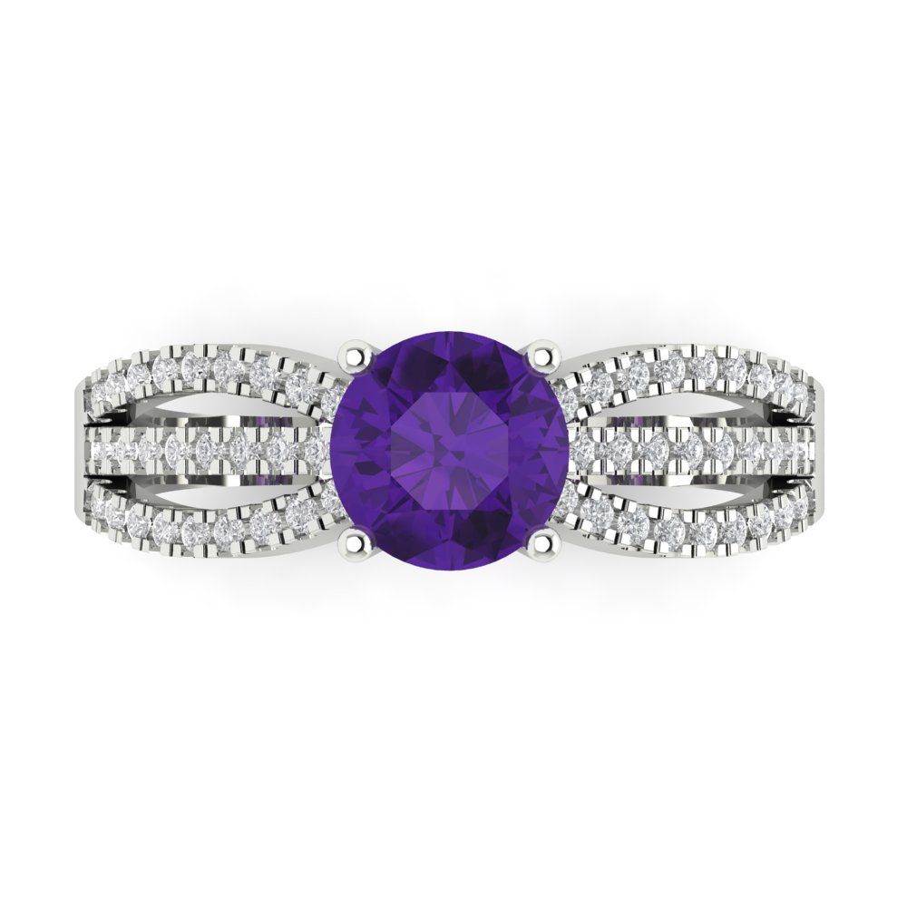 1.27 cttw Natural Amethyst Solitaire with Zirconia Simulated Diamond Accents Engagement Ring - Solid Gold (Round Cut,6.5mm)