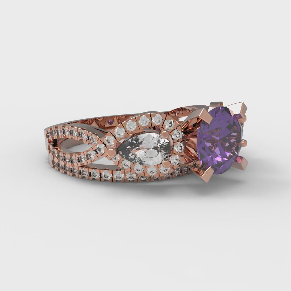 1.925 cttw Round Cut Natural Amethyst Bridal Set - Solid Rose Gold Engagement Ring & Wedding Band