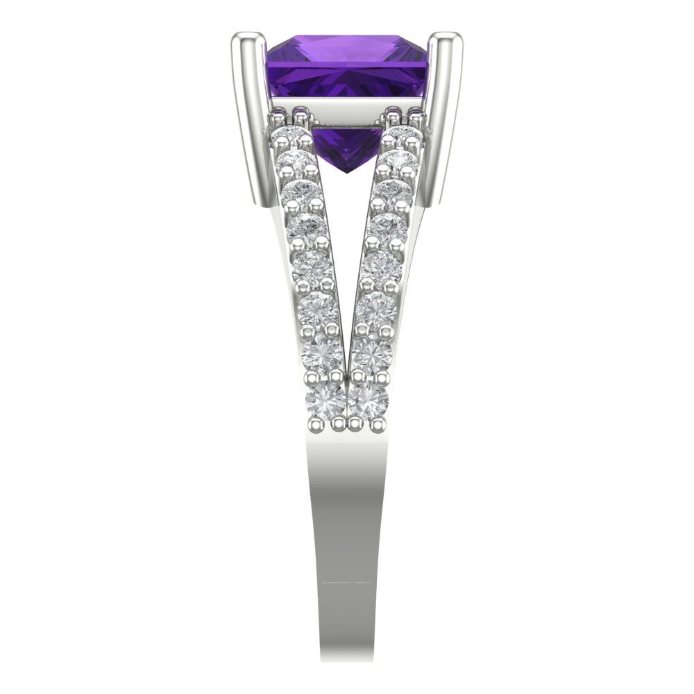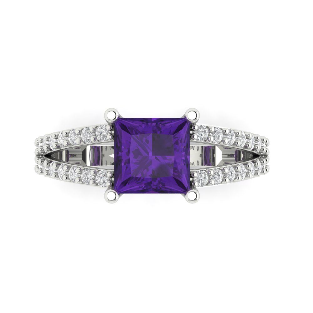 2.48 cttw Natural Amethyst Solitaire with Zirconia Simulated Diamond Accents Engagement Ring - Solid Gold (Princess Cut,7.0mm)
