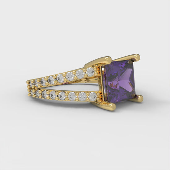 2.48 cttw Natural Amethyst Solitaire with Zirconia Simulated Diamond Accents Engagement Ring - Solid Gold (Princess Cut,7.0mm)