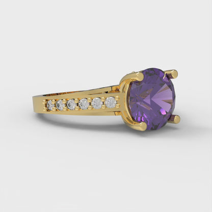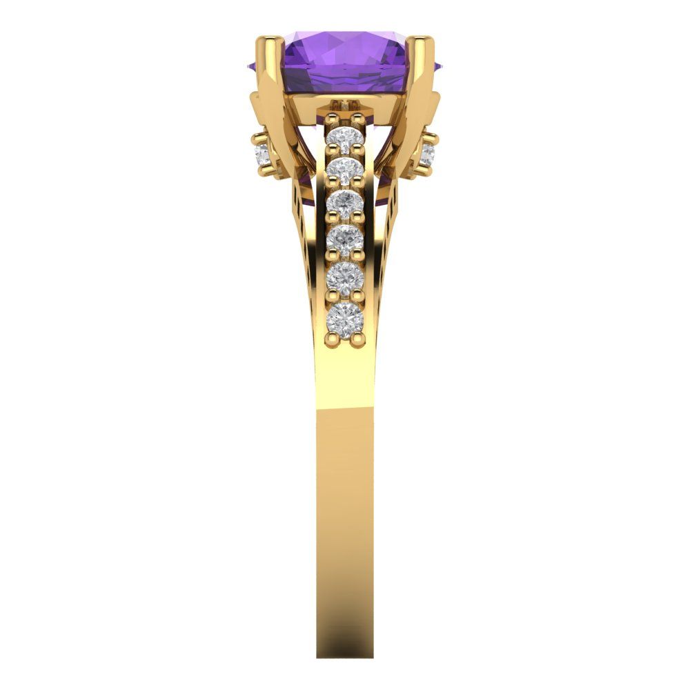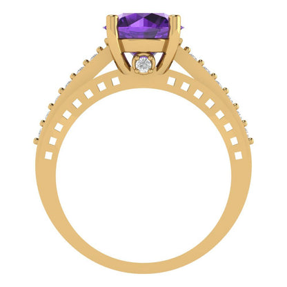 2.21 cttw Natural Amethyst Solitaire with Zirconia Simulated Diamond Accents Engagement Ring - Solid Gold (Round Cut,8.0mm)