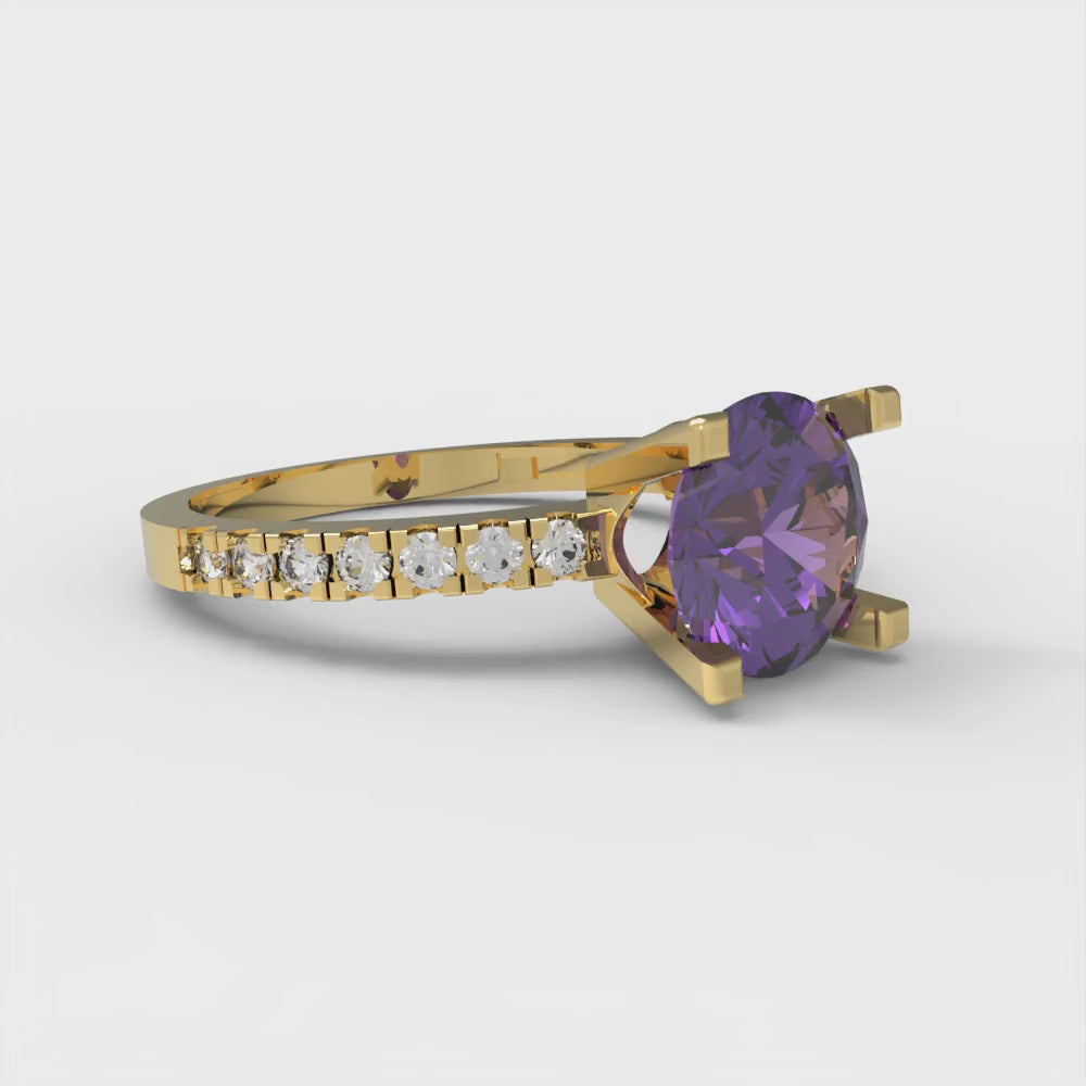 1.71 cttw Natural Amethyst Solitaire with Zirconia Simulated Diamond Accents Engagement Ring - Solid Gold (Round Cut,7.5mm)