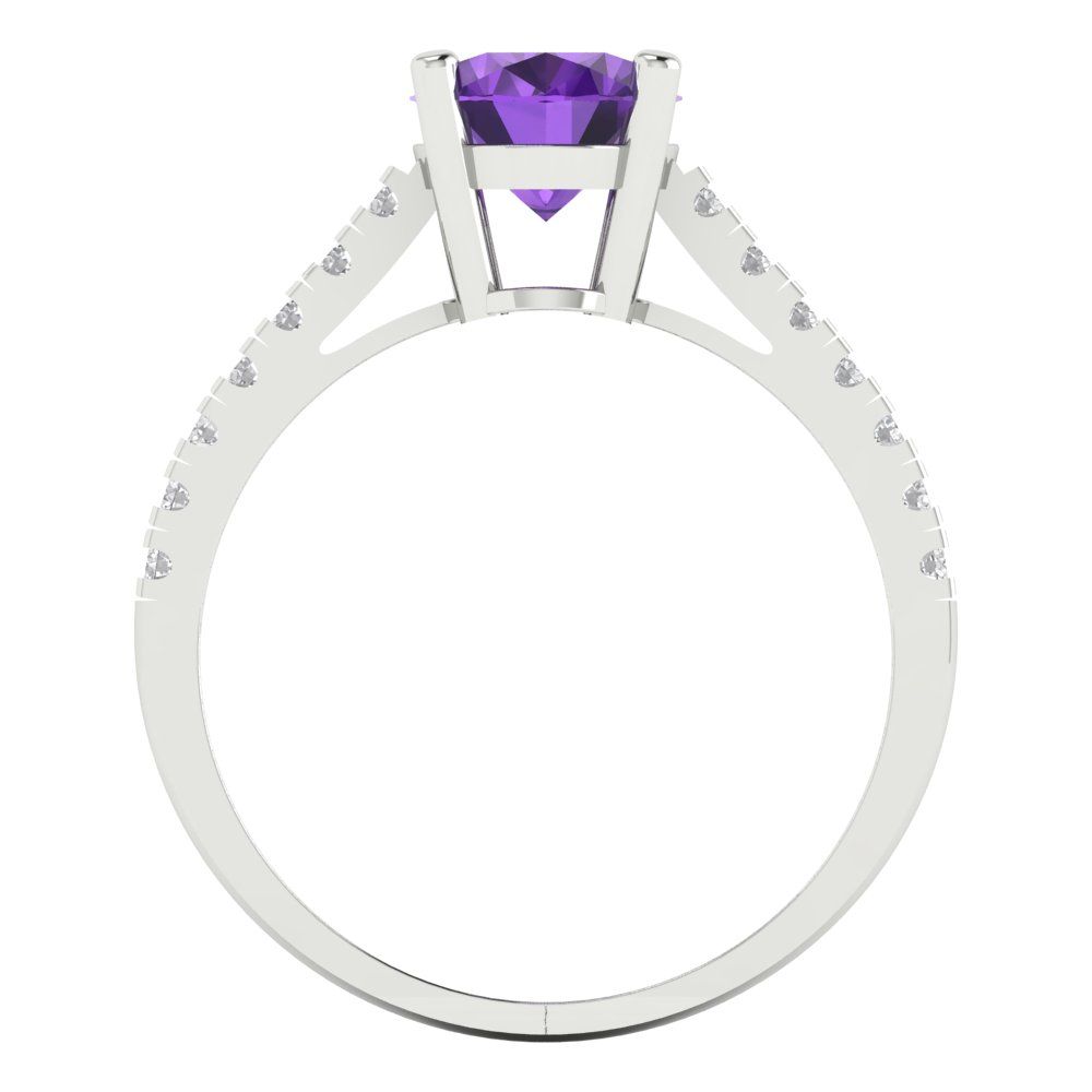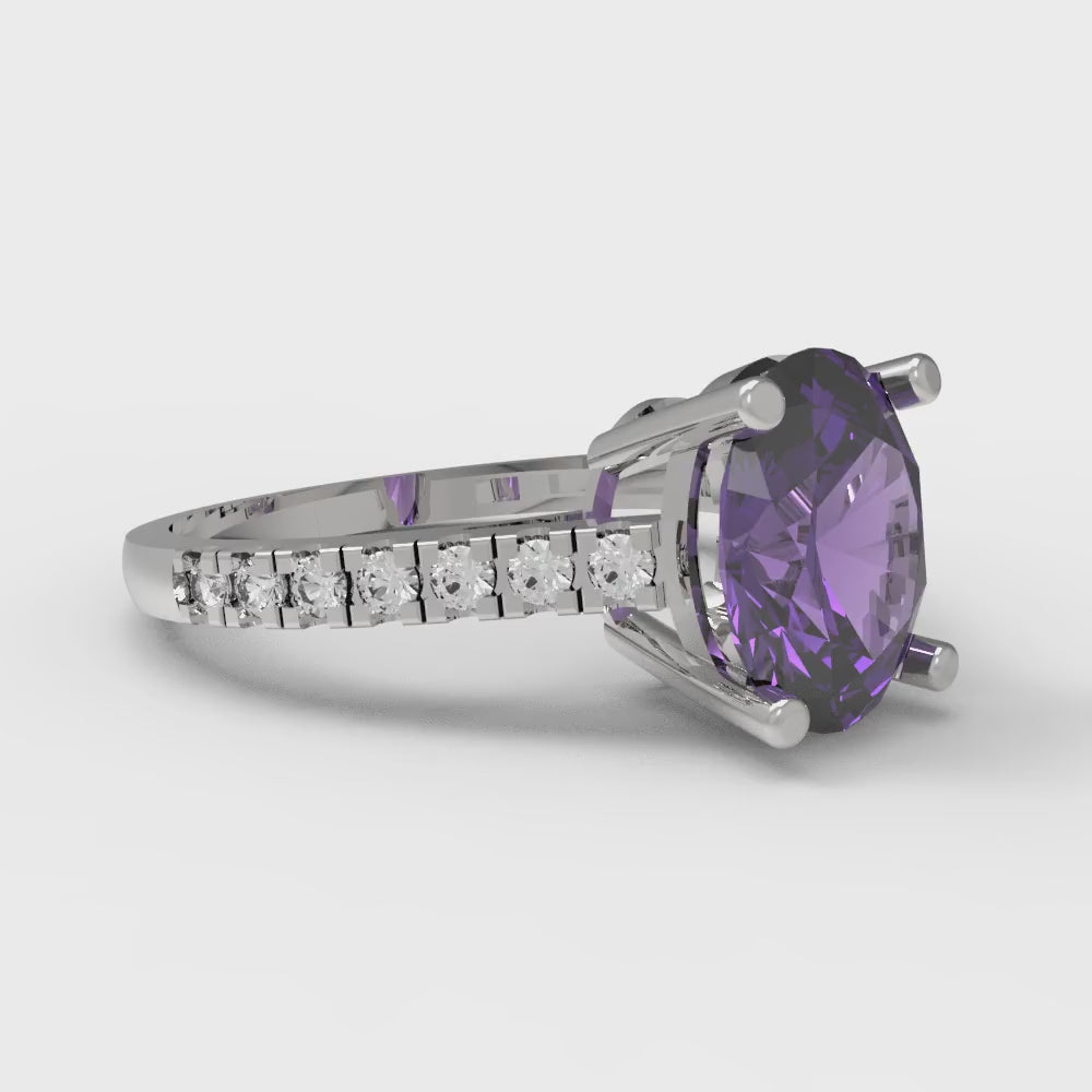 2.21 cttw Natural Amethyst Solitaire with Zirconia Simulated Diamond Accents Engagement Ring - Solid Gold (Oval Cut,9X7mm)
