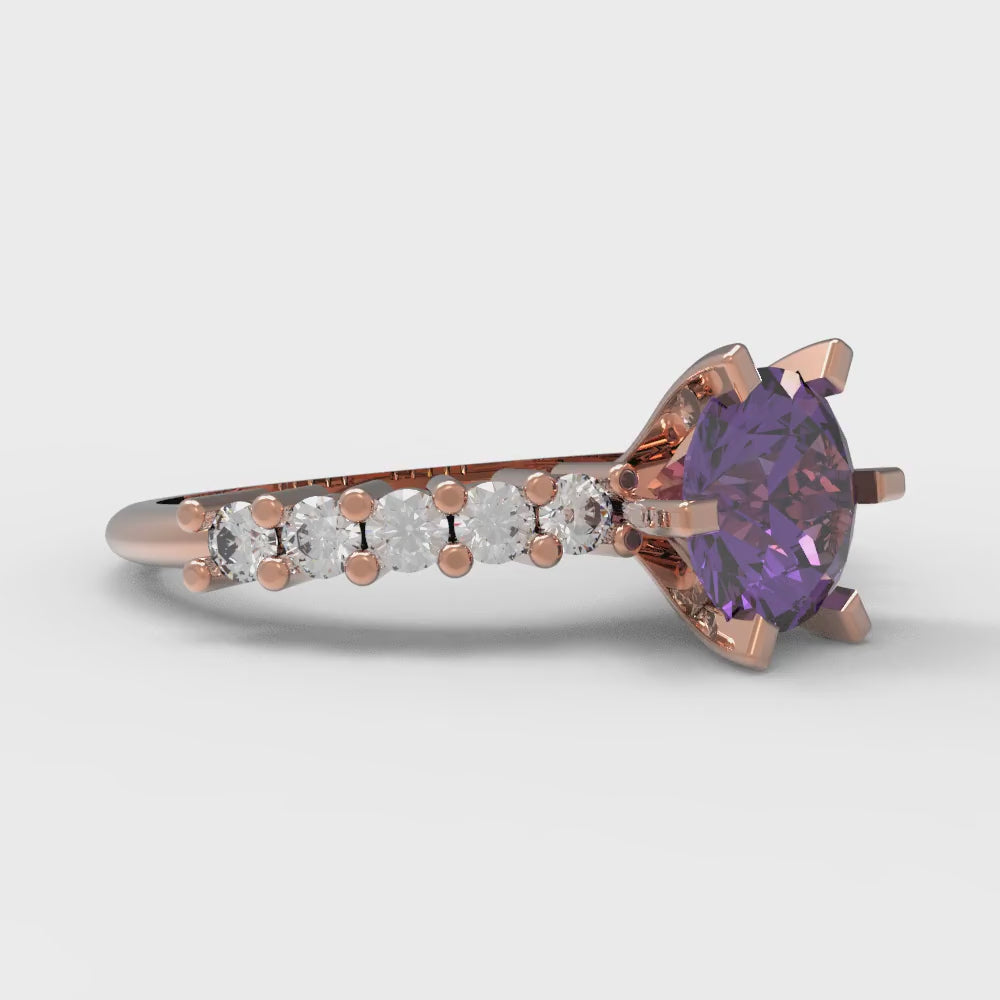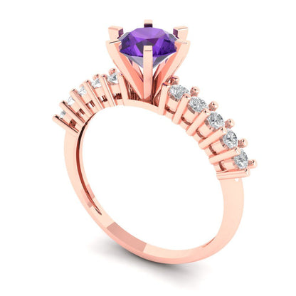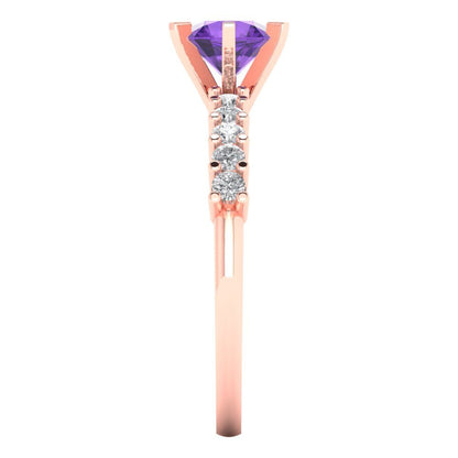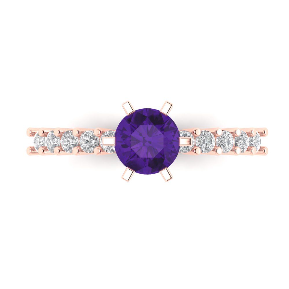 1.05 cttw Natural Amethyst Solitaire with Zirconia Simulated Diamond Accents Engagement Ring - Solid Gold (Round Cut,6.0mm)