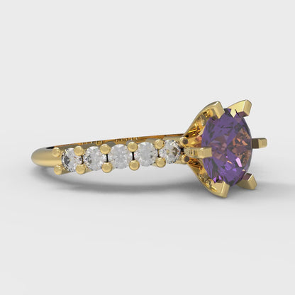 1.05 cttw Natural Amethyst Solitaire with Zirconia Simulated Diamond Accents Engagement Ring - Solid Gold (Round Cut,6.0mm)