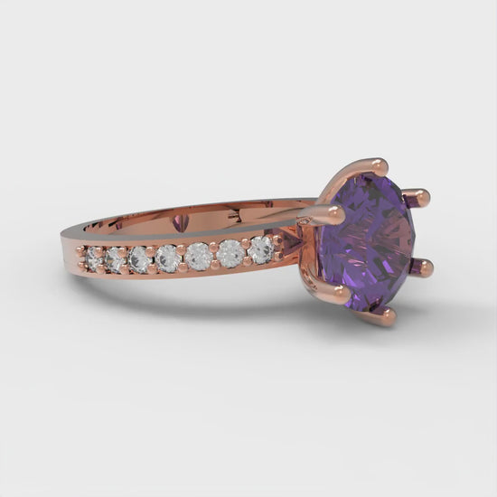 1.71 cttw Natural Amethyst Solitaire with Zirconia Simulated Diamond Accents Engagement Ring - Solid Gold (Round Cut,7.5mm)