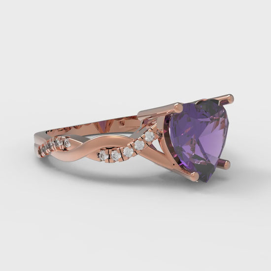 2.1 cttw Natural Amethyst Solitaire with Zirconia Simulated Diamond Accents Engagement Ring - Solid Gold (Heart Cut,8mm)