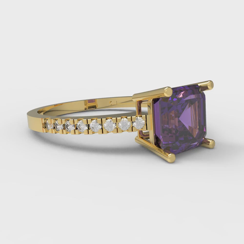2.7 cttw Natural Amethyst Solitaire with Zirconia Simulated Diamond Accents Engagement Ring - Solid Gold (Asscher Cut,6.5mm)