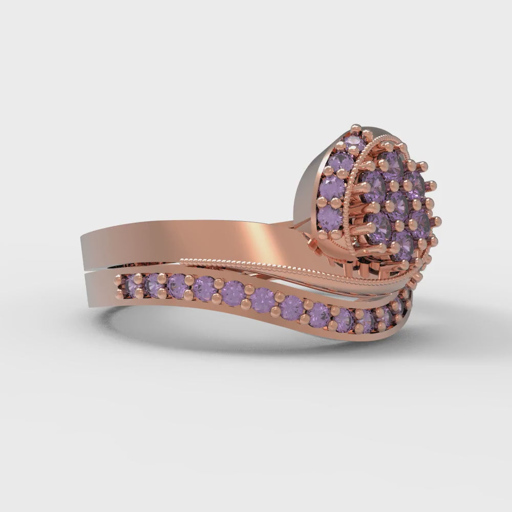 0.4 cttw Round Cut Natural Amethyst Bridal Set - Solid Rose Gold Engagement Ring & Wedding Band