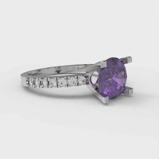 1.71 cttw Natural Amethyst Solitaire with Zirconia Simulated Diamond Accents Engagement Ring - Solid Gold (Round Cut,7.5mm)