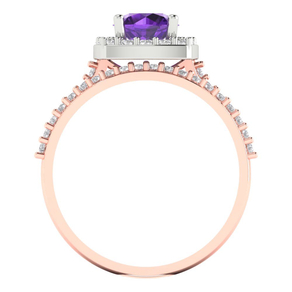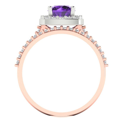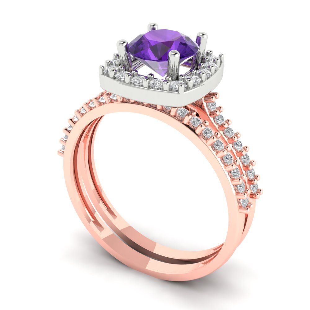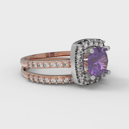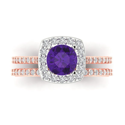 1.495 cttw Round Cut Natural Amethyst Bridal Set - Solid Rose/White Gold Engagement Ring & Wedding Band