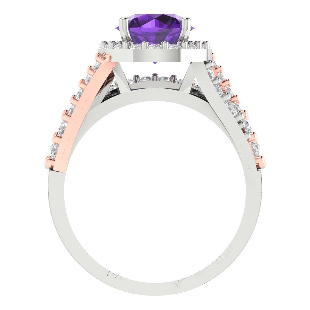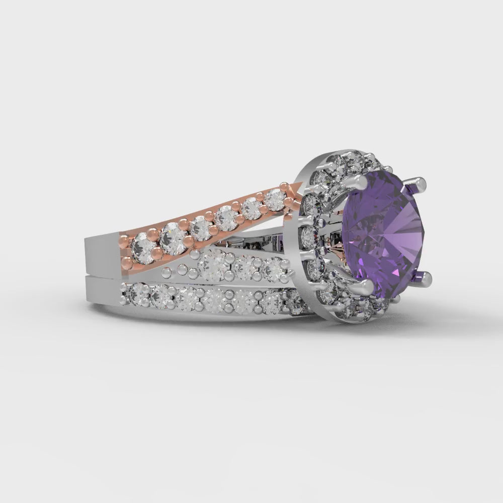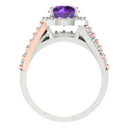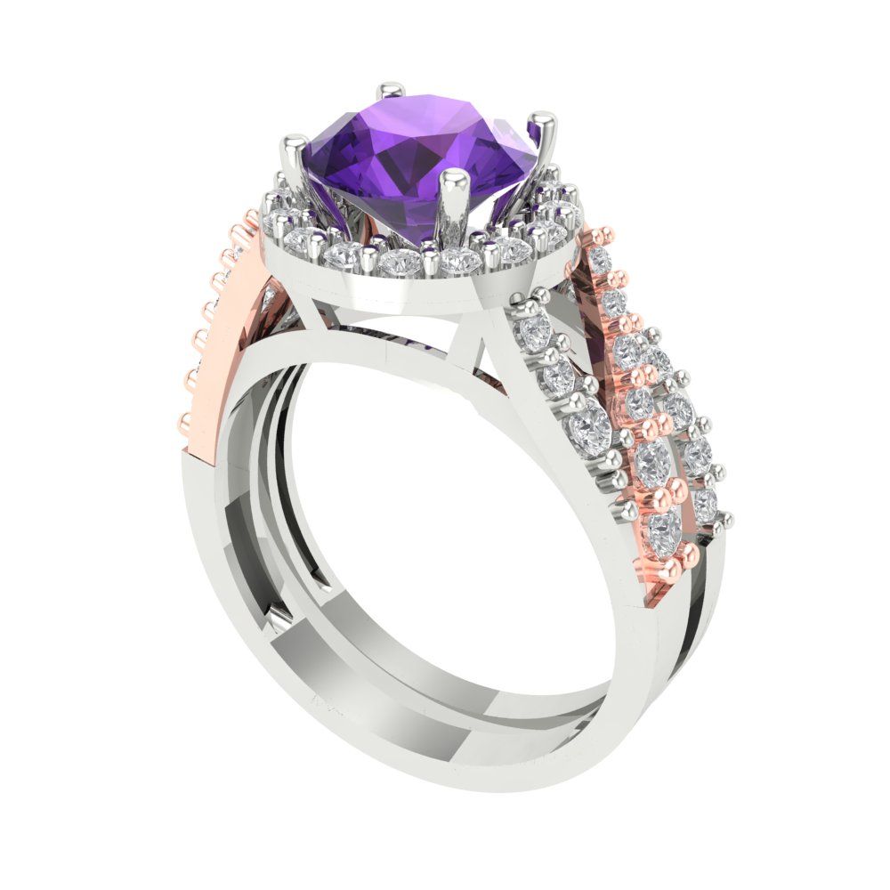 2.32 cttw Round Cut Natural Amethyst Bridal Set - Solid White/Rose Gold Engagement Ring & Wedding Band