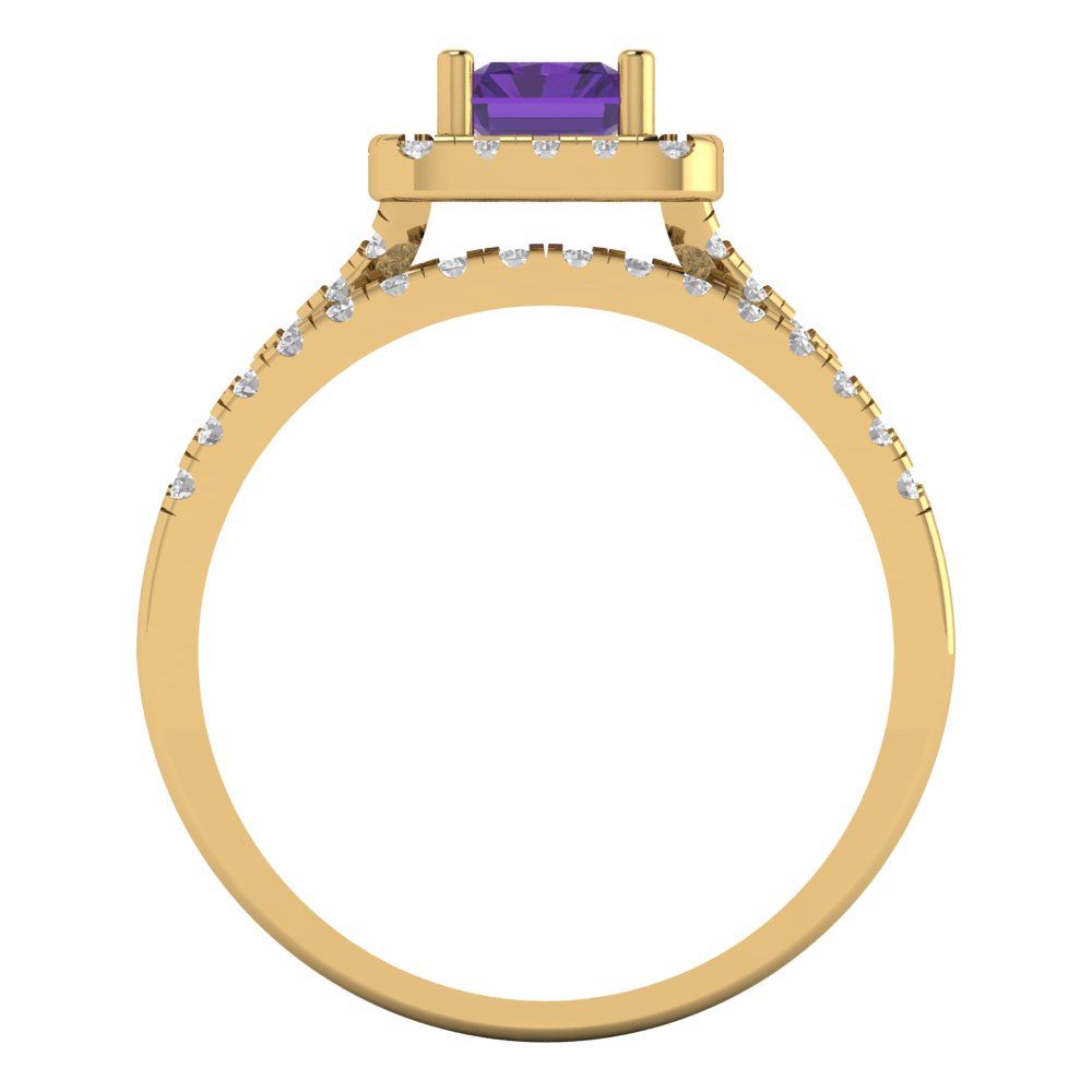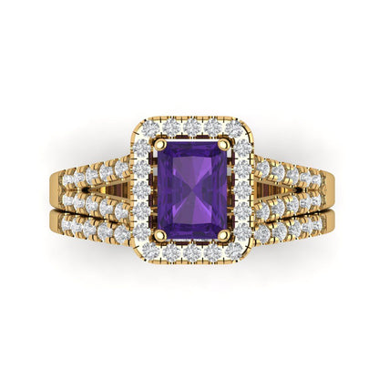 1.72 cttw Emerald Cut Natural Amethyst Bridal Set - Solid Yellow Gold Engagement Ring & Wedding Band
