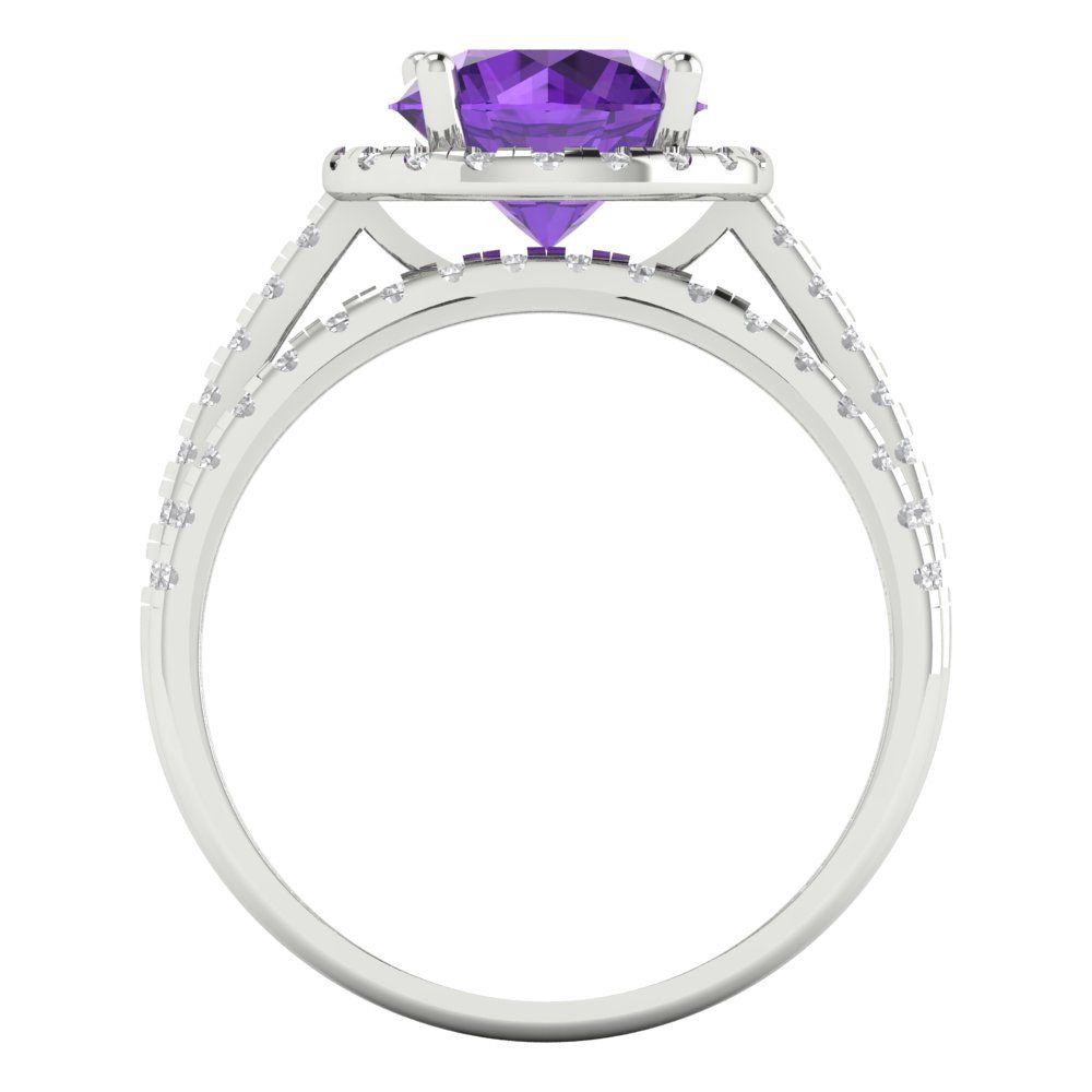 2.52 cttw Round Cut Natural Amethyst Bridal Set - Solid White Gold Engagement Ring & Wedding Band