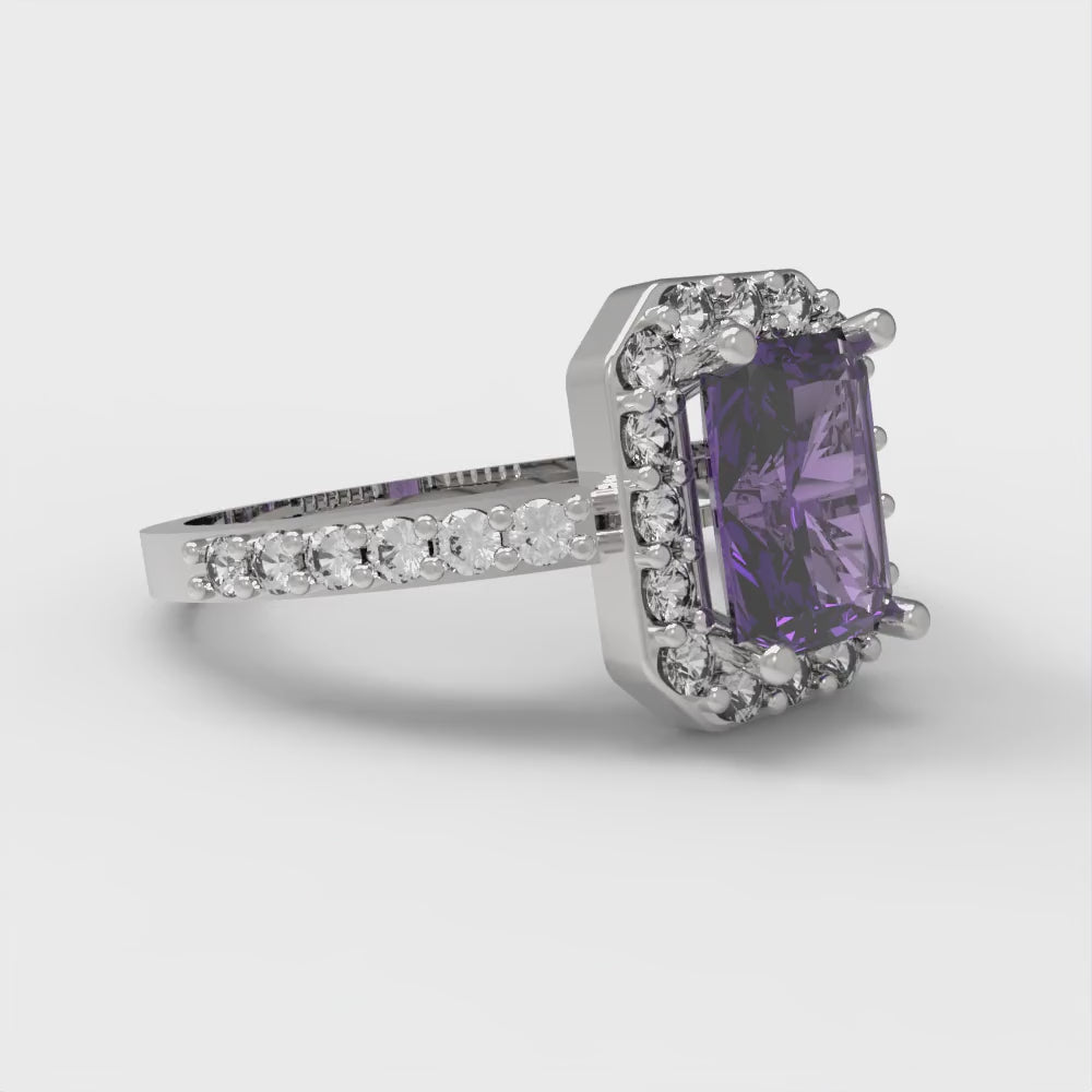 2.16 cttw Emerald Cut Natural Amethyst Bridal Set - Solid White Gold Engagement Ring & Wedding Band