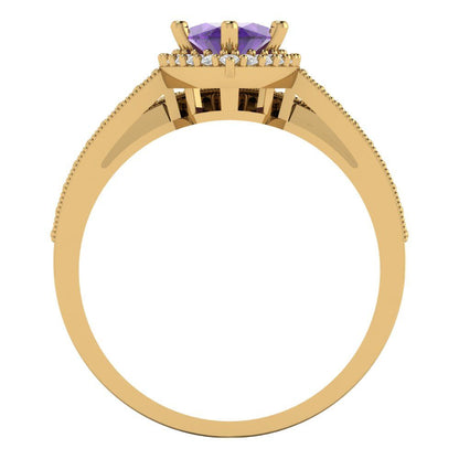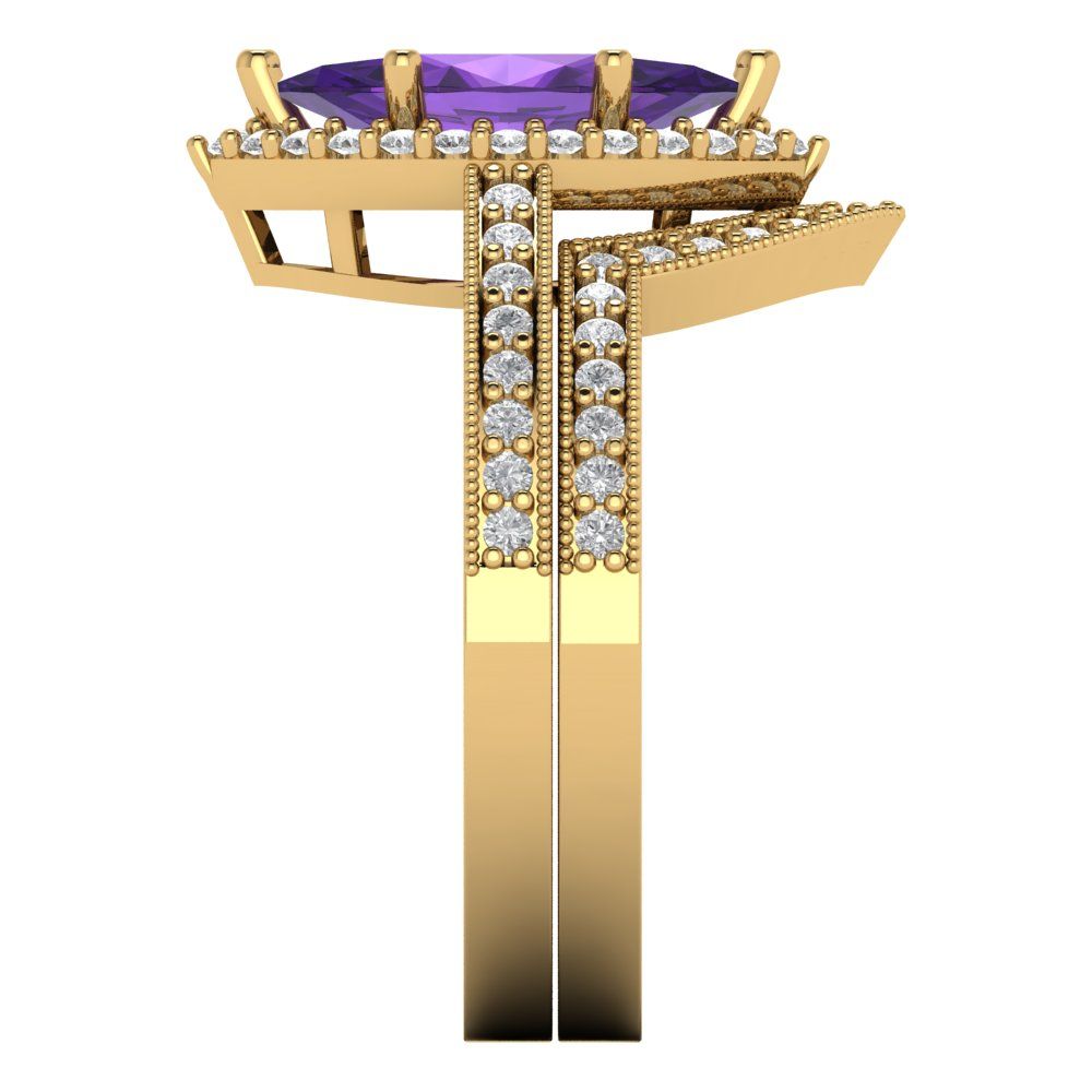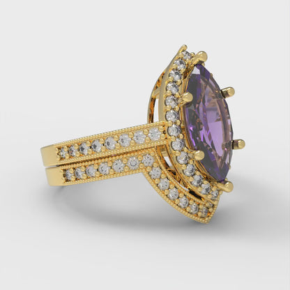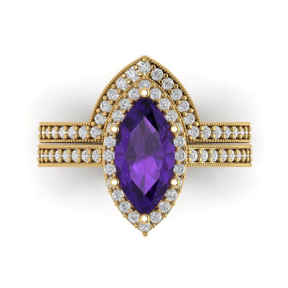 2.4875 cttw Marquise Cut Natural Amethyst Bridal Set - Solid Yellow Gold Engagement Ring & Wedding Band