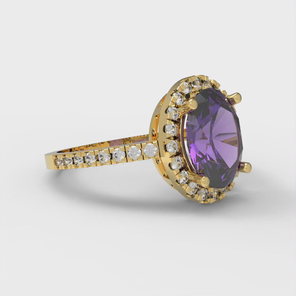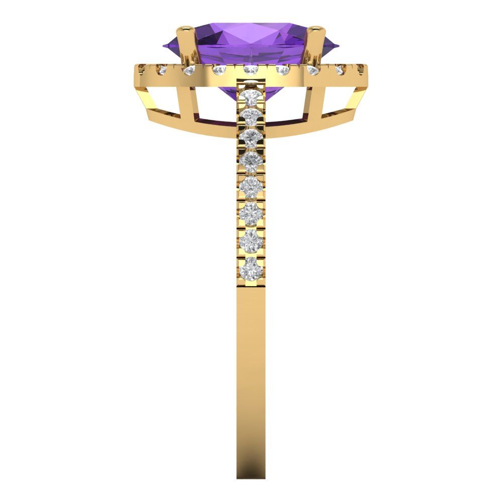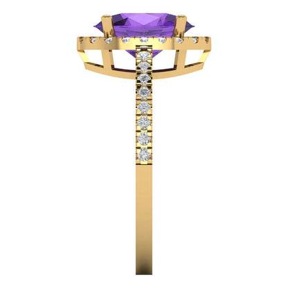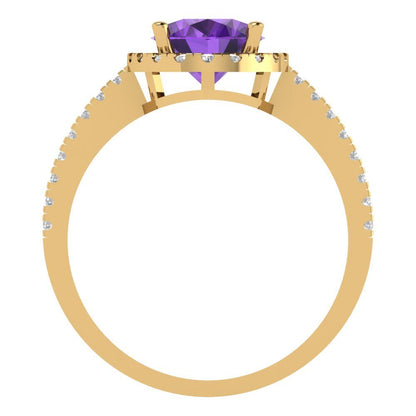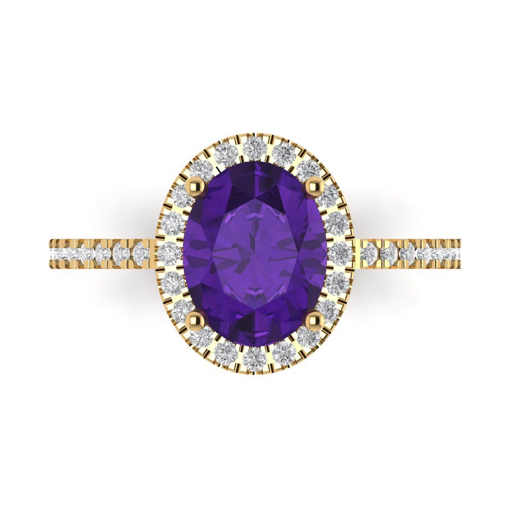 2.27 cttw Natural Amethyst Solitaire with Zirconia Simulated Diamond Accents Engagement Ring - Solid Gold (Oval Cut,9X7mm)