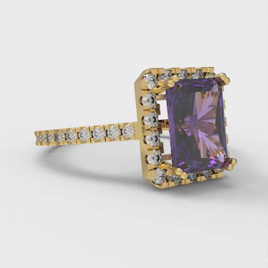 1.86 cttw Natural Amethyst Solitaire with Zirconia Simulated Diamond Accents Engagement Ring - Solid Gold (Emerald Cut,7.5x5.5mm)
