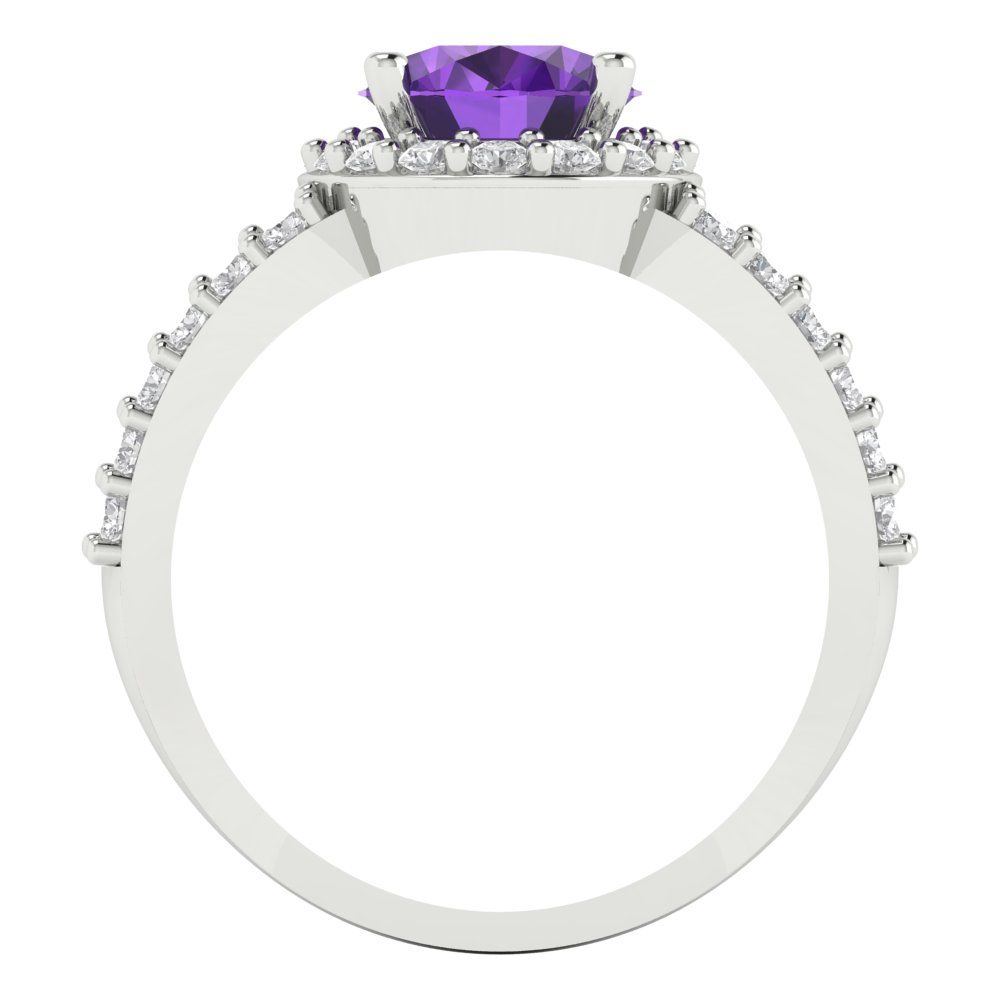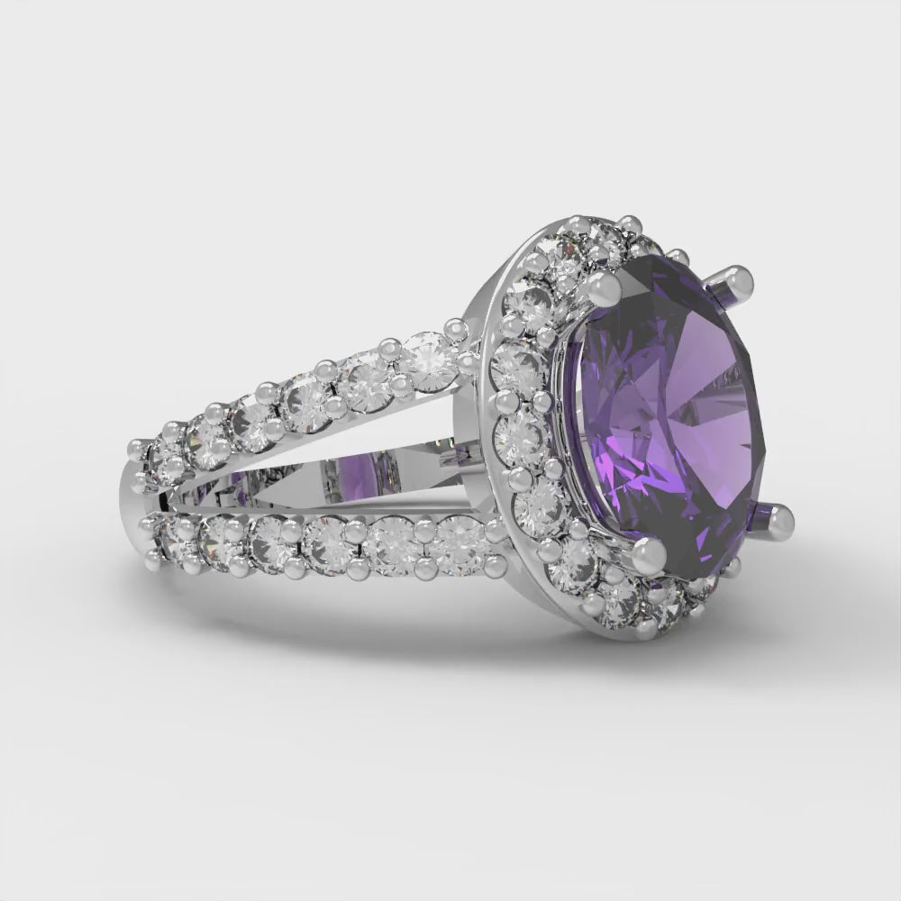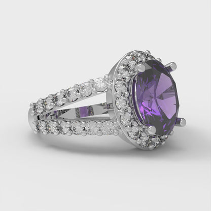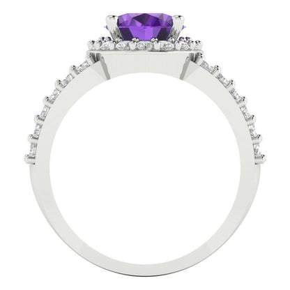 2.6 cttw Natural Amethyst Solitaire with Zirconia Simulated Diamond Accents Engagement Ring - Solid Gold (Oval Cut,9x7mm)