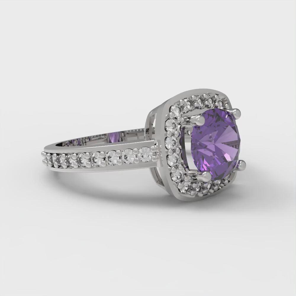 1.335 cttw Natural Amethyst Solitaire with Zirconia Simulated Diamond Accents Engagement Ring - Solid Gold (Round Cut,6.5mm)