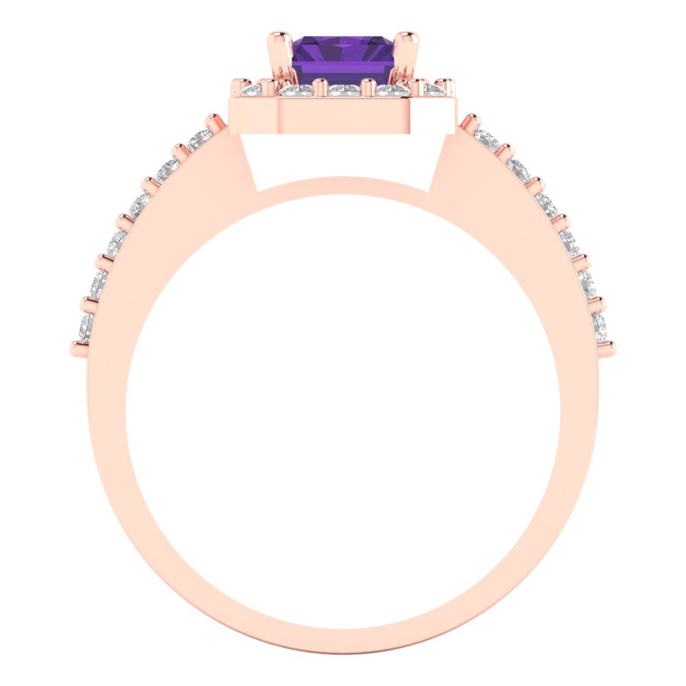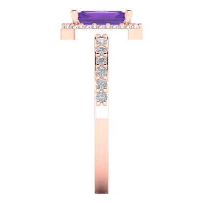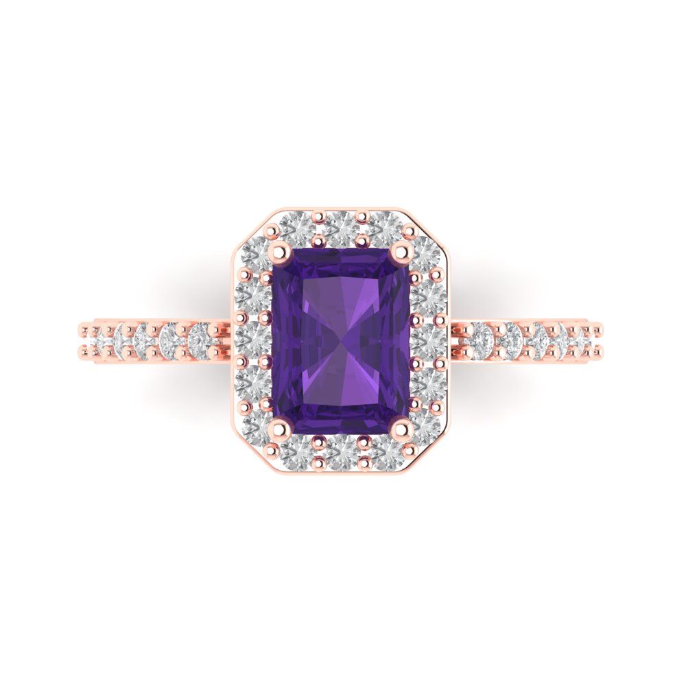 1.92 cttw Natural Amethyst Solitaire with Zirconia Simulated Diamond Accents Engagement Ring - Solid Gold (Emerald Cut,7.5X5.5mm)