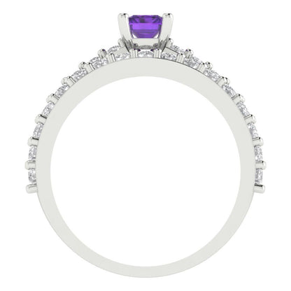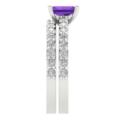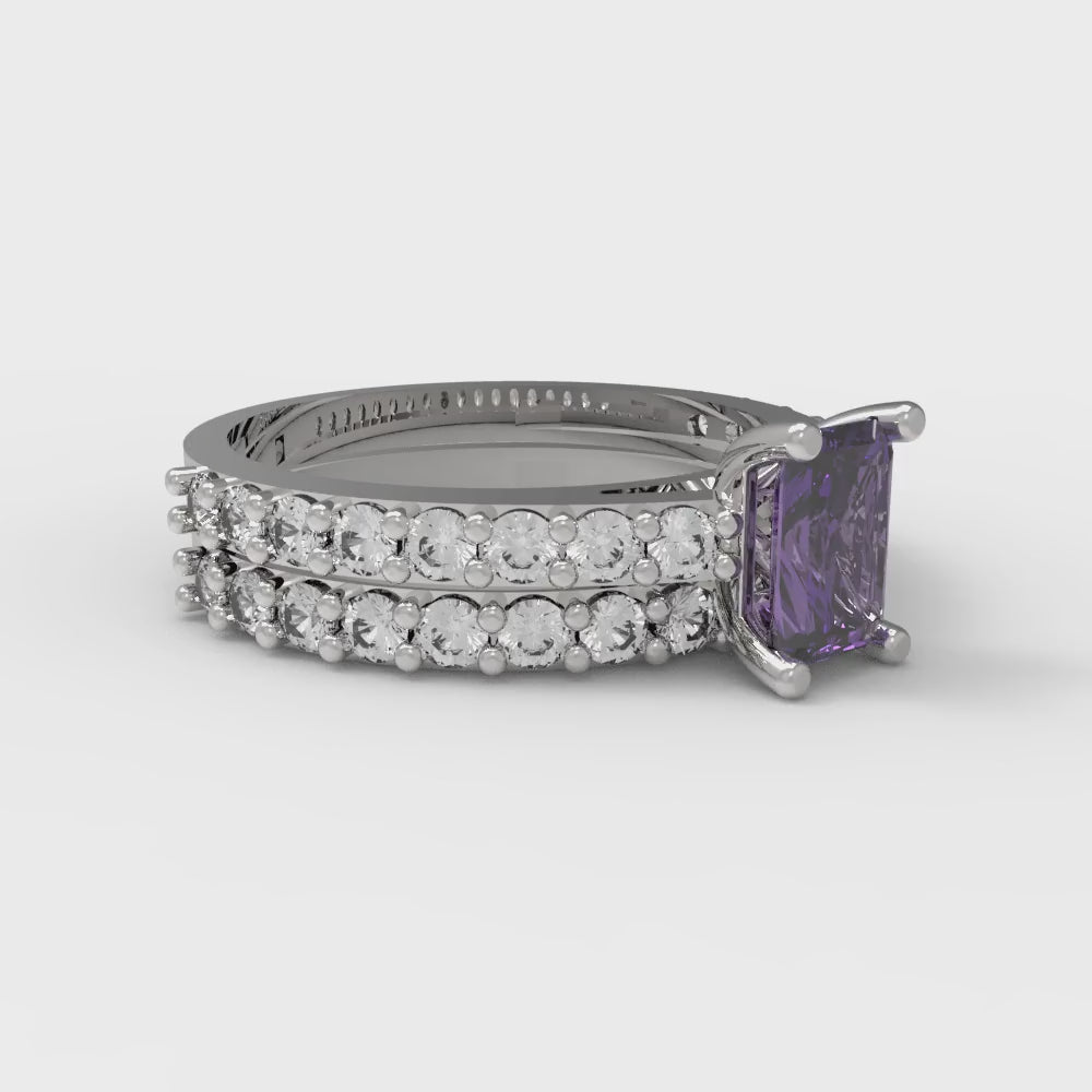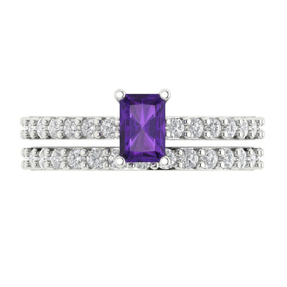 1.325 cttw Emerald Cut Natural Amethyst Bridal Set - Solid White Gold Engagement Ring & Wedding Band