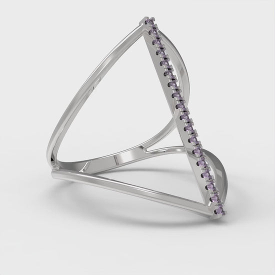 0.09 cttw Natural Amethyst Statement Engagement Ring - Solid Gold (Round Cut,1.0mm)