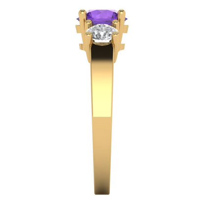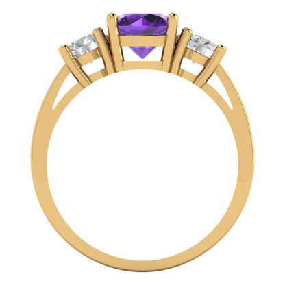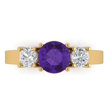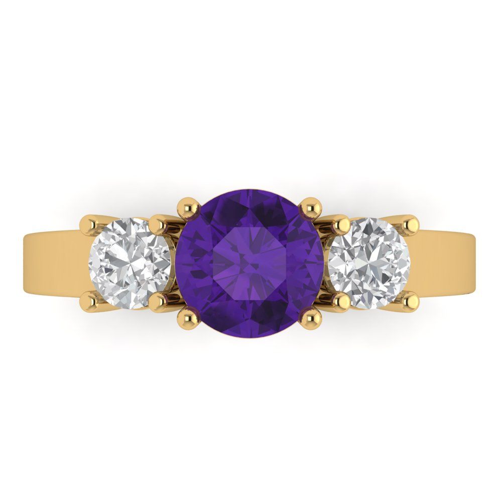 1.5 cttw Natural Amethyst Three-Stone Engagement Ring - Solid Gold (Round Cut,6.5mm)