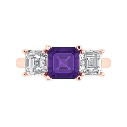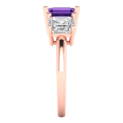 4 cttw Natural Amethyst Three-Stone Engagement Ring - Solid Gold (Square Emerald Cut,7.0X7.0mm)