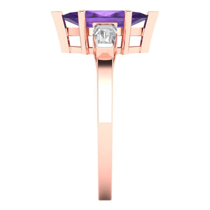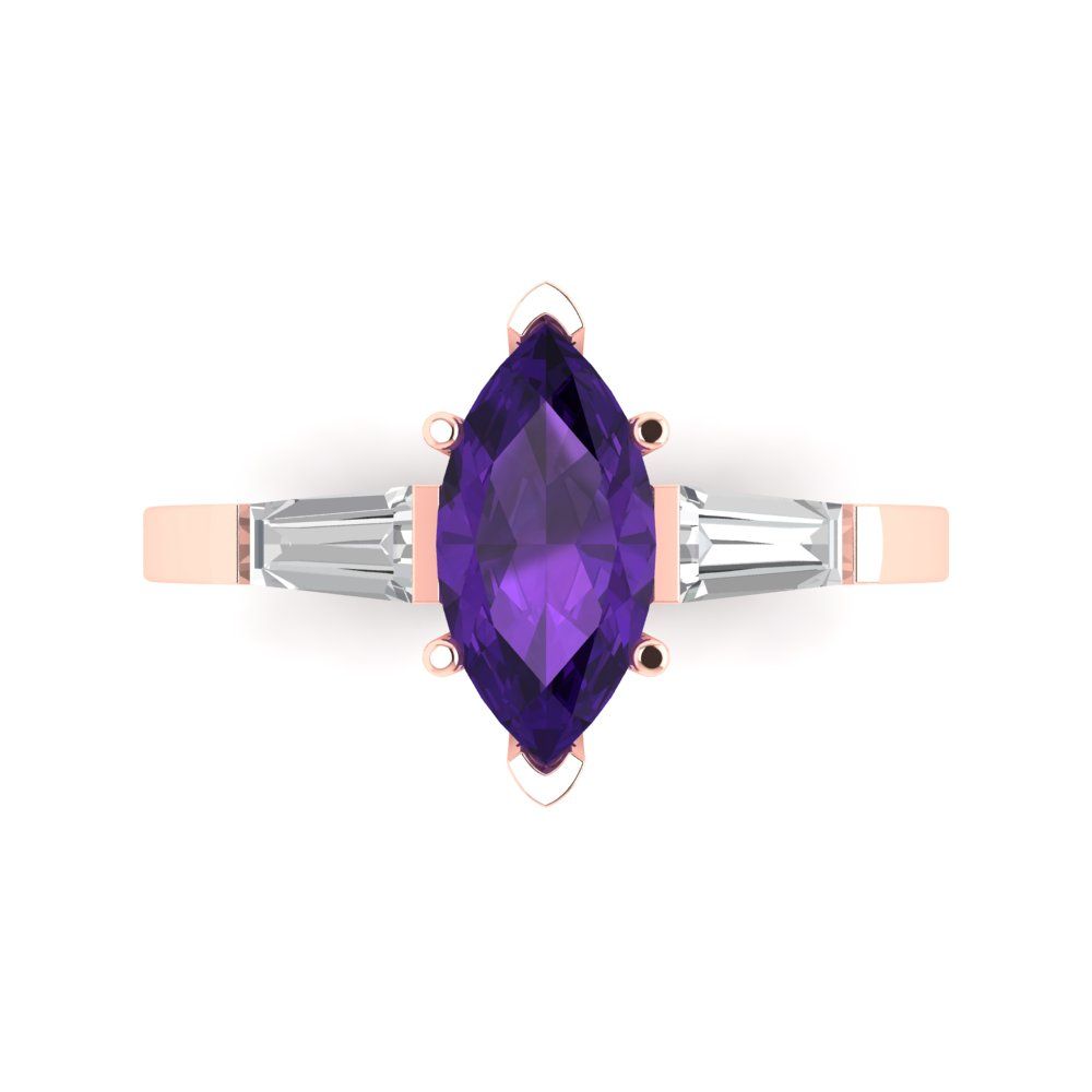 2 cttw Natural Amethyst Three-Stone Engagement Ring - Solid Gold (Marquise Cut,11x5.5mm)