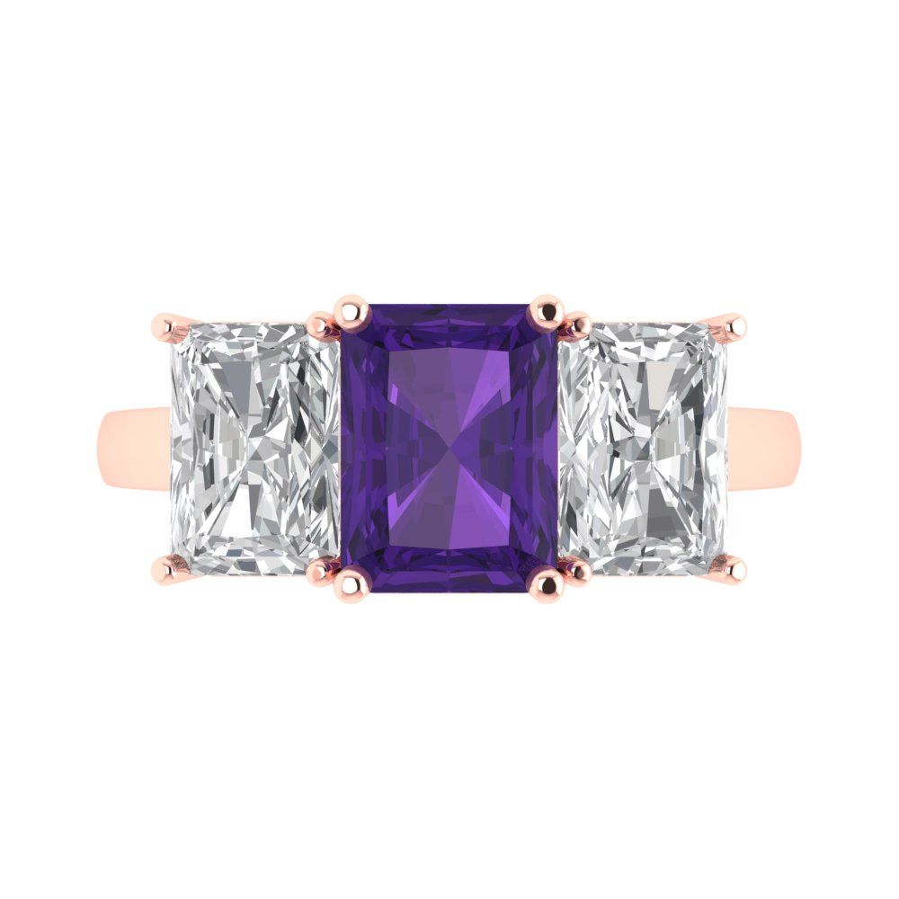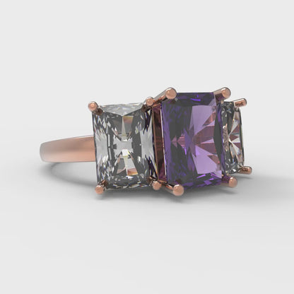 4 cttw Natural Amethyst Three-Stone Engagement Ring - Solid Gold (Emerald Cut,8x6mm)